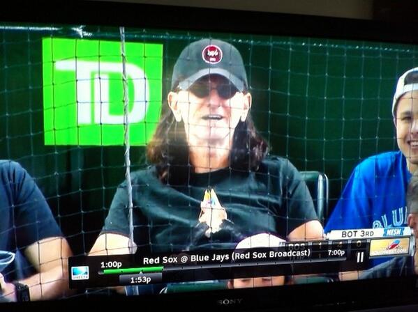 Geddy Lee is your dad, except your dad sucks because he's not Geddy Lee. Your dad didn't do the bass solos on "YYZ" and "La Villa Strangiato," your dad doesn't play bass guitar with his hands while playing synths with his feet on a nightly basis, and your dad DEFINITELY didn't scream the words 'WE ARE THE PRIESTS OF THE TEMPLES OF SYRINX" like his life depended on it. Canada, particularly Toronto, doesn't have its famous fans of local teams (other than one Mr. Graham, seen here throwing the opening pitch at a Cleveland game once upon a time) and even if you don't agree with the band's geeky music then at least share with us in our appreciation of Lee's steadfast support for the Jays. They probably need it. Lee is a stodgy fan though, one who sits behind home plate and keeping score, rarely emoting or standing. He is very serious about baseball, probably in the same way he is very serious about prog rock.While the Jays are currently struggling to keep afloat in the ALCS (we are 3-1 against Cleveland with game five starting in a handful of hours) in lieu of that, we appreciate the stoic pillar that is Geddy Lee behind home plate:His stomping walk-on with actual mascot Ace is the best and also that he can actually pitch okay! Give this man a $217 million contract to pitch for the Boston Red Sox!Please do not disrupt his concentration or his distrust of the digital scoreboard.That feeling when you have no chill.During game five of the ALDS, the Jays played their rivals the Texas Rangers last year—whom they beautifully swept a week ago in this year's ALDS—and Geddy Lee was invited onto this…radio show, I guess, to talk about how insane that game was, which it was. During that game someone threw a beer can that narrowly missed a baby and it DID NOT impress resident Dad, Geddy Lee.He is ALWAYS down to geek out on baseball and also, he was on the GIlmore Girls set in 2007 with Sean Gunn—KIRK! Lee apparently beat Gunn's fantasy baseball team, proving that Lee is not here to make friends, he's here to win. And likely thinks Buffy the superior series.Phil Witmer loves Rush. Follow him on Twitter . Sarah MacDonald likes Slow. Follow her on Twitter .