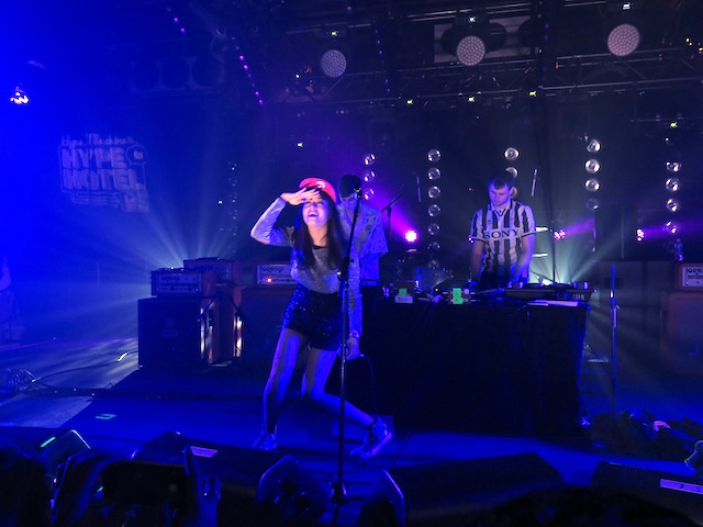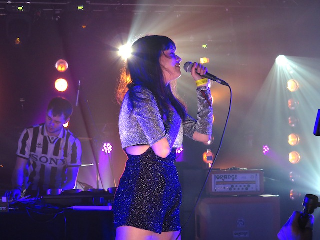 Next, I had a hot date with Kero Kero Bonito. The London-based trio of two pale beatmakers (who double up as skinny, sometime synchronized backing dancers), and singer Sarah Bonito are a confetti canon of cute. Bonito sing-speak-raps in Japanese, English, and French, sometimes delivering lyrics directly into the face of a Yoshi-like stuffed toy. Somehow she’s written a glitchy, electro-blog-pop tune about taking selfies (“Picture This”) without it being a barf-in-a-bag level of kitsch. At one point she tells a story about meeting a chicken in a forest and said chicken told her she wasn’t dancing enough, and that inspired the following composition. Kero Kero Bonito have a song called “Babies (Are So Strange).” They’re the ideal blend of Nintendo bleeps, Japanese cute, Yelle-like Parisian pop, and LDN cool. You didn’t know you needed this, but you do. Kero Kero Bonito.