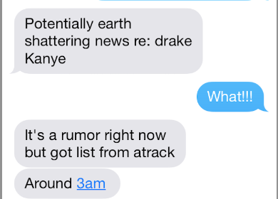 And then came the Choose Your Own Adventure moment: stay for Rocky or skip out to Illmore on a wish and a chance and a hope and rumor that Drake and Kanye would be performing. Together. Friends, I chose wrong. I abandoned the free food and drink, and my prom date and Rocky and went to an emptying-out warehouse where A-Trak was playing to a bunch of sloppy stragglers. And then Fame School hopped up onstage to shout all over “All Day” and, like, stage dive.