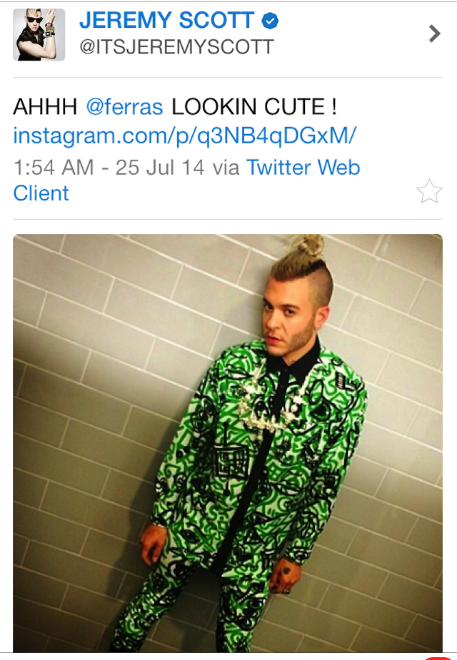 We only know about Ferras because of Katy Perry. No shame in that. The brilliant thing about KP is when she shines a light on something or someone she loves, about a gazillion people give over a moment of their time—such is her sway, such is the magic of social media. She has good taste though. For instance, she loves Margot, he NYC-based singer and violinist, and we love her too, which means that this gorgeous video got a lot of love when KP tweeted it out. All of which is to say when we skipped off to see Perry's Prismatic tour a few months back we were so excited that we got there early and actually caught the support act. It was a man called Ferras, the first artist signed to Perry's label Metamorphosis Music. He writes impassioned, R&B-spangled pop, that make the most of his supple vocal range, and in some cases, showcases his skills when it comes to tinkling the ivories. Sometimes his lyrics are kinda naughty ("There's no good in goodnight / Let's be bad and stay high"), and a little bit euphemistic ("No many words / I wanna speak in tongues").One of the other aspects about Ferras that's immediately worth noting is his style. You see his hair first—shaved at the sides, but on top it stands erect like the Olympic flame or a perky shark fin, or braided down, Grecian style. Then there's the tats, and the leather, and studs, and oodles of inky black fabric. Thus we decided his old photo albums must be littered with awesome pictures, fashion triumphs and fashion fails (shouts out to that Ed Hardy moment!). So we asked Ferras to have a look and he dug deep. He also talked about his various looks by calling them "lewks"—a perversion of the English language we'll be adopting on the regular from now on.