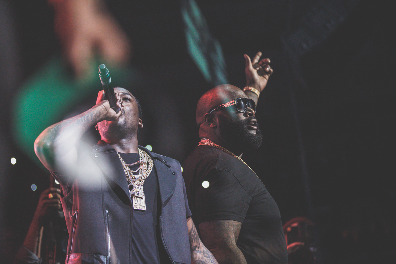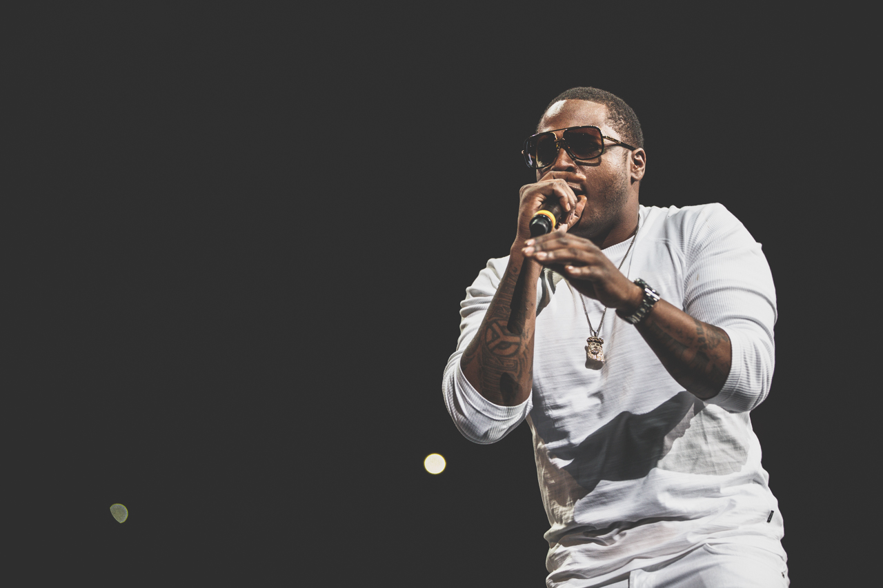 Meek Mill tha gawd. Photos by Rocco Avallone.There was a point last night, in the midst of Meek Mill’s homecoming concert at Wells Fargo Center in Philadelphia—a venue that, by the way, holds just shy of 20,000 people—when Allen Iverson walked out on stage. He didn’t do anything. And either did Meek. They both just stood there, stoically, looking out over the crowd. Or maybe a better word to use there is kingdom. Two gods. One city. And that city is Philadelphia.There isn’t much in this town. I’m not a resident, and I’ve only visited a handful of times, but that’s the first thing anyone who calls Philadelphia home will tell you. “We don’t have a lot,” they’ll say. “But what we have is pride.” There’s a feeling you get riding through the streets, whether it’s taking a walk past some old shit Benjamin Franklin touched in Center City, or if you’re running up the steps of the art museum simply for a funny Rocky photo you can share on social networks, or if you end up at a strange party in West Philadelphia where all you can do is make jokes about Will Smith and being born and raised. But who cares? That's what Philly is. Scrappy pride. And that's what Meek Mill's music is all about.Continued below.Meek Mill doesn’t tour arenas. His debut record Dreams and Nightmares in 2012—one of the most honest, hard, and driven rap records in recent memory—released just shortly after Kendrick Lamar’s good kid, M.A.A.D. City and, unfairly, ended up being one of the more overshadowed albums of that year. In the eyes of the general public without knowledge of who Meek is and what he means to the rap world, it’s something you could probably consider a flop—or if you’re a general consumer of music, it’s something you might just assume was a standard run of the mill rap album. But Dreams and Nightmares sold just shy of 400,000 copies. Take pause with that number for moment. That’s essentially the equivalent of going platinum in an era of when people actually paid for music. And I’m willing to bet a handsome amount of money that you’ll find a majority of those copies sitting on shelves across the city of Philadelphia. Moreover, Meek dropped his mixtaped Dreamchasers 2—which literally crashed DatPiff's website and remains the most downloaded mixtape on DatPiff's website by a longhot (4.4 million to Lil Wayne's Sorry 4 the Wait in second with 2.8 million). And his previous mixtape, Dreamchasers, is considered by many to be his best project. It should be noted, too, that the breakout hit for Meek was the intro the Dreams and Nightmares, which is pretty much the opposite of what anyone would consider a rap single because it's just him rapping over a piano, yet it's able to—still to this day—absolutely tear up the club. Meek has basically become a superstar rapper by doing everything that superstar rappers supposedly don't do (selling albums, having a crossover single, and avoiding jail).What I’m getting at is that Meek Mill is so Philly it both helps and hurts him, which could arguably be a metaphor for the city’s culture itself. It’s a town that, because of its economic and social situation, provides so much opportunity for young aspiring artists of all kinds, yet once those artists reach a certain threshold, they’re so caught up on paying it back to where they’ve come from that they don’t know where or how to move forward.