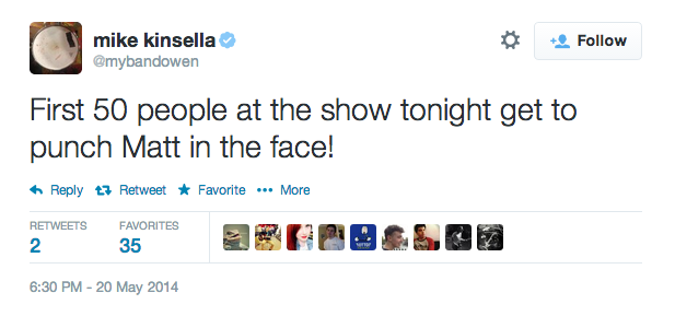 People follow you because they want 140-character glimpses at what your life is like. And since you’re stuck with your idiot bandmates in a van for 10 hours a day, you might as well amuse your followers and yourself by using social media to take away their dignity. Maybe tweet that your guitarist wants everyone at tonight's show to come up and tickle him. Or possibly expose your bassist’s secret fear of balloons. And there’s always the time-honored classic: tweet a photo of your drummer passed out, with a big ol’ dick drawn on his face.