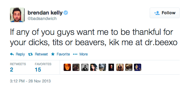 Once in a while, you’ll have something to promote—a new album, a video you made, a Kickstarter to fund a podcast you’re starting (terrible idea, by the way)—and that’s fine. Once in a while. But if the only thing you use Twitter for is to peddle your crap, you’ll start to look like those deadbeat friends who only call when they need to borrow money.If you are a big enough celebrity, occasionally, a #cool #brand will ask you to do a Twitter takeover and tweet from their account for a few hours. As soon as they hand over that password, go buck fucking wild. Tweet pictures of your sack, threaten to fight their followers, tell off-color jokes. Do whatever you gotta do to get their follower count down to zero. That’ll teach their 22-year-old social media director a lesson about strategizing outside the box.