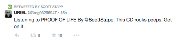 Hey look, some jagoff in Nebromaha tweeted at you to say they like your album. Terrific! Take the compliment, fave it, and move on. Do not retweet compliments about yourself to your followers. This is sad and pathetic. You might as well post a Vine of a fan giving you a BJ.