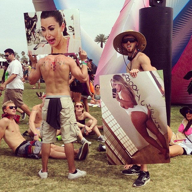Wow, these dudes are really getting into Coachella's butt theme. "Hello, Kinko's? Are my giant photos of Kim Kardashian ready yet? Coachella is tomorrow and I need them urgently to be HILARIOUS."