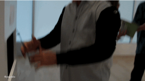 Certain people talk with their hands. Whether they're "culturally-distinct" Italian hand gestures, or simply frenetic hand-waving, kinetic idiosyncracies are personal and unique. One new installation by artist Pablo Gnecco, with programming and design help by Dan Moore, is a welcomed exploration of the visual language we create with our hands.Gesture-Gesture, an interactive project for FOREWARD, a group show in Atlanta's Gallery 72, is an opportunity to both see the specific hand motions of your friends and peers, but also preserve online for the world to see. At the exhibition, visitors place their arms into sleeves that go inside a box, as if it were giving you an x-ray. Once inside the box, custom software captures three seconds of hand-movement, and turns it into a GIF. These are then projected as white hands on a wall.Using a webcam and OpenCV, Dan Moore's application (built in openFrameworks) is able to detect motion inside the box. When one GIF is added to the projection, the oldest is removed from the display, but gets archived in a data folder that can be viewed online.The Creators Project talked to Gnecco, who explained that the installation's inspiration came from two observations. "The first," he explained, was that "some interactive installations are about machines understanding only specific gestures. These programs only allow us to manipulate an image or change a parameter with an A, B, or C gesture." Secondly, the other inspiration stems from his observation that we are communicating more over text, video, and pictures. "We are losing our voice and—though I'm not a [linguistics] expert—gestures were probably our first form of expression." He wanted to create an installation that doesn't care if you do or do not sync with the machine, but that lets you say whatever you choose to say with your hands, and then archives those messages so they won't be forgotten.