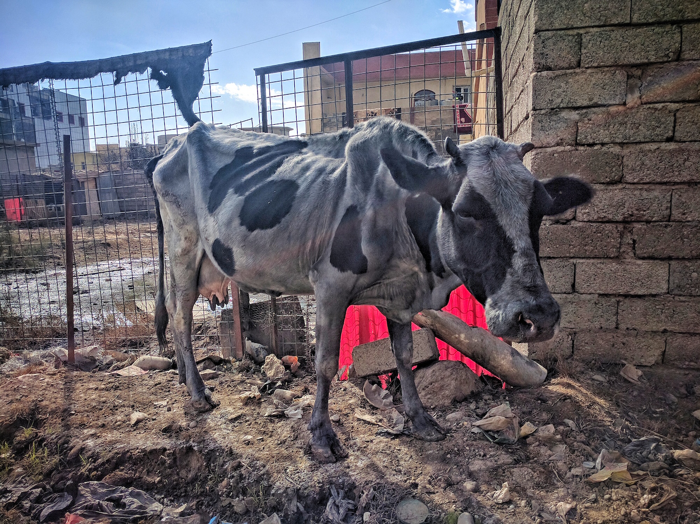 In the town of Qayyarah, two young boys stand on the roof of their house, situated right next to an oil well set alight by IS. The fire has been raging for weeks, and their health has been severely affected. In the background is the town’s hospital, which remains almost completely destroyed and unable to provide necessary health care.