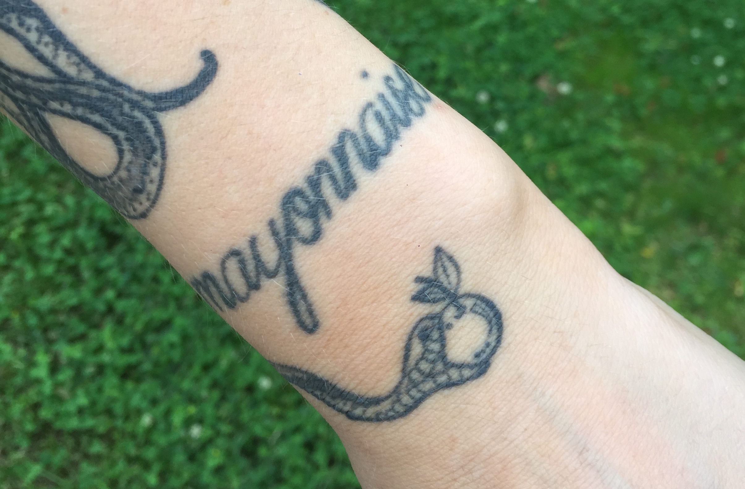 Growing up “we always had the massive mayonnaise tub in my fridge and always had a back up in our cupboard,” she said, noting her mom fully approved of the tattoo.