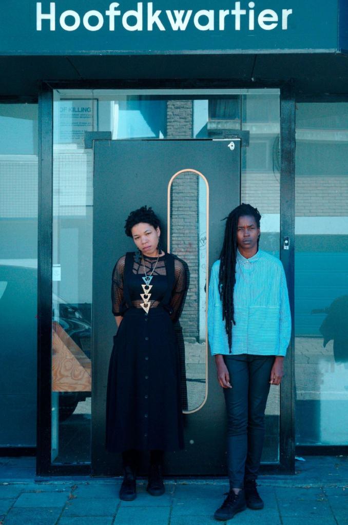 Moor Mother and Rasheedah Phillips outside the Black Quantum Futurism space in Philadelphia