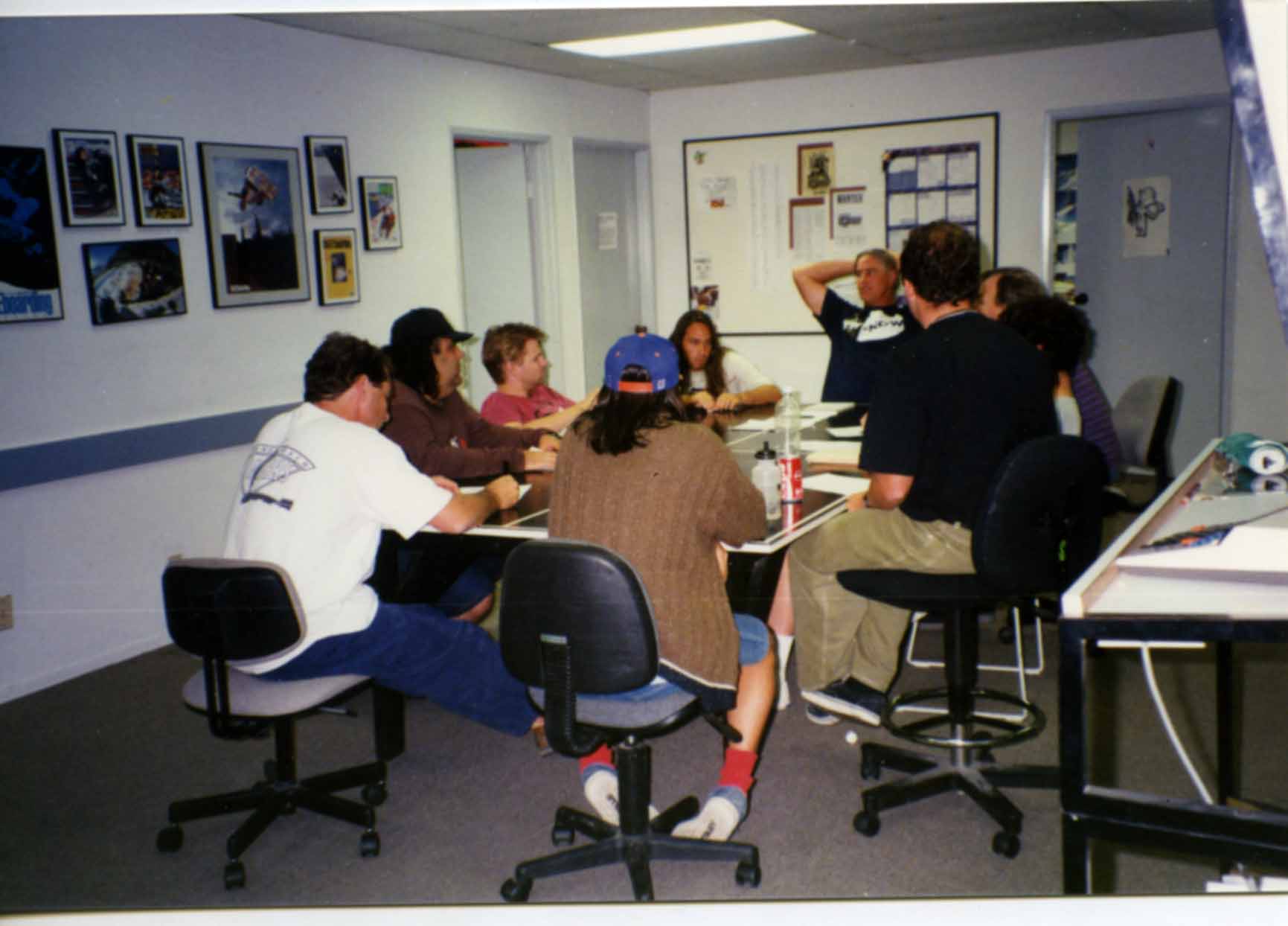 Larry Balma: We started talks in ’92, and I didn’t think we’d ever make a deal. That was just on Transworld Snowboarding. My basic deal was to string out Times Mirror as long as we could, and I had them sign a thing that they wouldn’t talk to anyone else. The other magazine was Snowboarder at the time, and if they couldn’t buy us they were going to buy Snowboarder, and then Snowboarder would have the finances to go blow themselves up. After a year they started listening to what I had to say. We were telling them that we had to do the magazine here. They’re going, “No, the way a magazine’s done is you go to 2 Park Avenue in New York and do your magazine out of the business building.” It took two years and we ended up doing a deal with them. They let us keep the magazine here in Oceanside and do the work on it. A year after that the guy who did the deal came down to Transworld, and he’s got four guys in the limo with him. I said, “What are you doing here?” He says, “We’re just trying to see how you guys can run so efficiently.” And I said, “One thing is we don’t haul four guys around in a limo to go figure that out.”