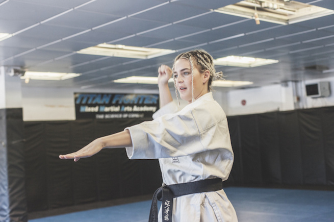 I’m not going to lie, I was shit-scared about doing karate with Anne-Marie. But as soon as I stepped into the gym she made me feel immediately at ease, and I realised this whole thing was going to be less about beating me up, and more about teaching me how to defend myself, which is a great skill to have. You wouldn’t fuck with a karate champion, would you? Unfortunately, my flailing limbs couldn’t chop so much as a half-baked souffle than a human body. But Anne-Marie is legitimately the most badass person I have ever met, and I am hoping some of it at least rubbed off on me.
