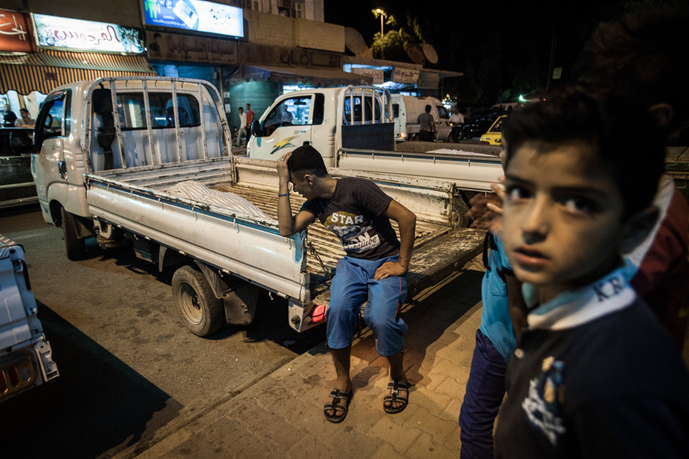 Once we arrived, there was no time for ceremony. The burial had to be carried out in a rush because of the site’s proximity to Division 17 and our lights had to be turned out in case they attracted any remaining Syrian army officials in the region. A number of men helped hand over the bodies to the father as he stood inside the massive open grave. Others held their phones up to provide just enough light for the bodies to be laid in the right place. After a few minutes, we left.