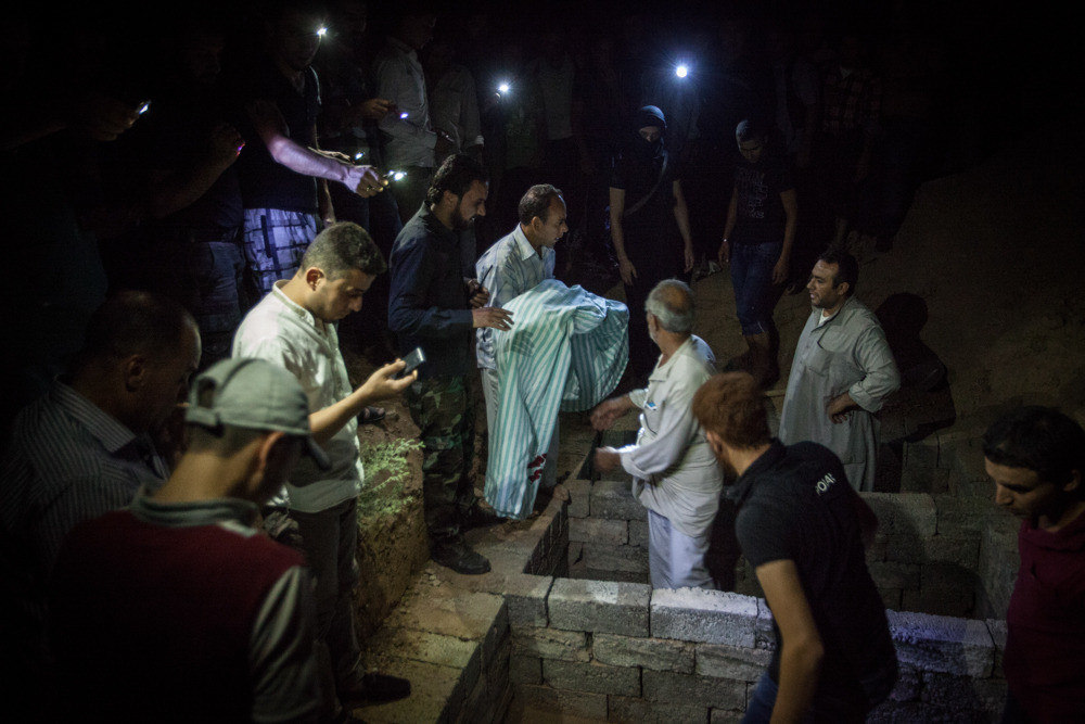I’ve had first-hand experience with that problem myself. At the end of Ramadan, I was woken by the sound of a fleet of ambulances screaming by—it turned out that Syrian army helicopters had dropped bombs on three different buildings, killing 13 people. Within a few hours, I found myself standing in the refrigerated room of a morgue with a father as he watched the bodies of six of his children being wrapped up in burial sheets.