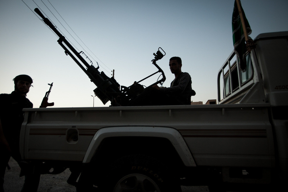 The family waited until the evening for the funeral to avoid being caught in another attack, as funerals are often targeted by shelling from the regime. A rebel manning a heavy machine gun—or a “dushka,” as they’re colloquially named—on the back of a pick-up truck followed us for protection.