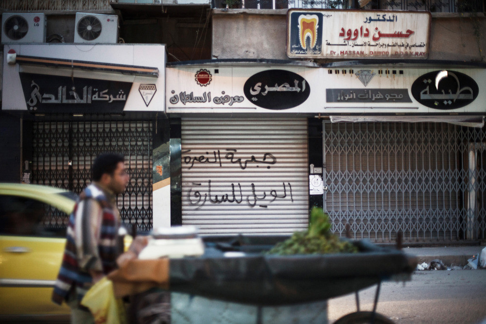 A number of civil movements—both religious and secular—have also been trying to establish themselves in a bid to influence the future of the city and eventually the country. A group named Haqna, Arabic for “Our Right”, is one of the organizations leading the charge. Its logo, a hand making a V sign, the index finger marked with election ink, is spray-painted all over the city. Mostly made up of young local activists, Haqna is aiming to educate the population about their civil rights and the importance of elections.