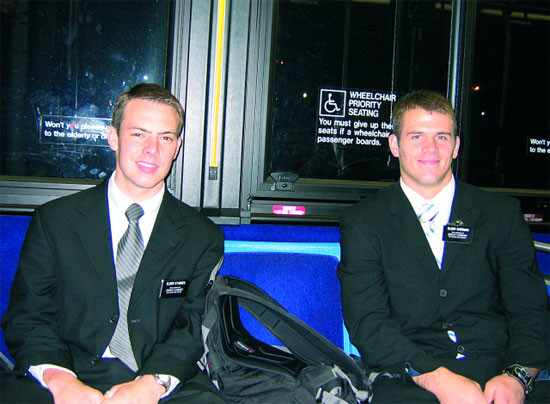 Elder Sherman (right) and Elder Starnes taking the bus. Photo by the author.