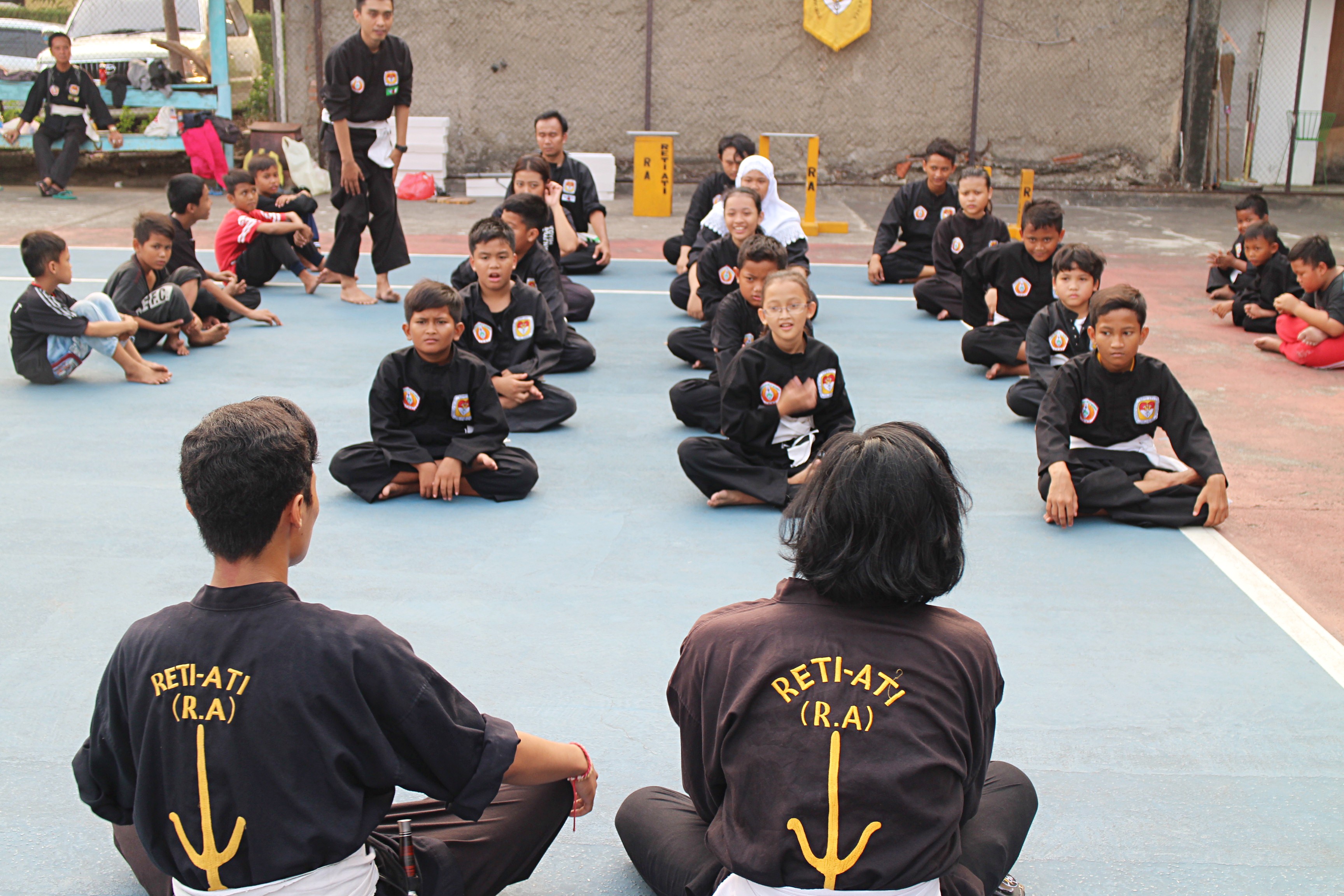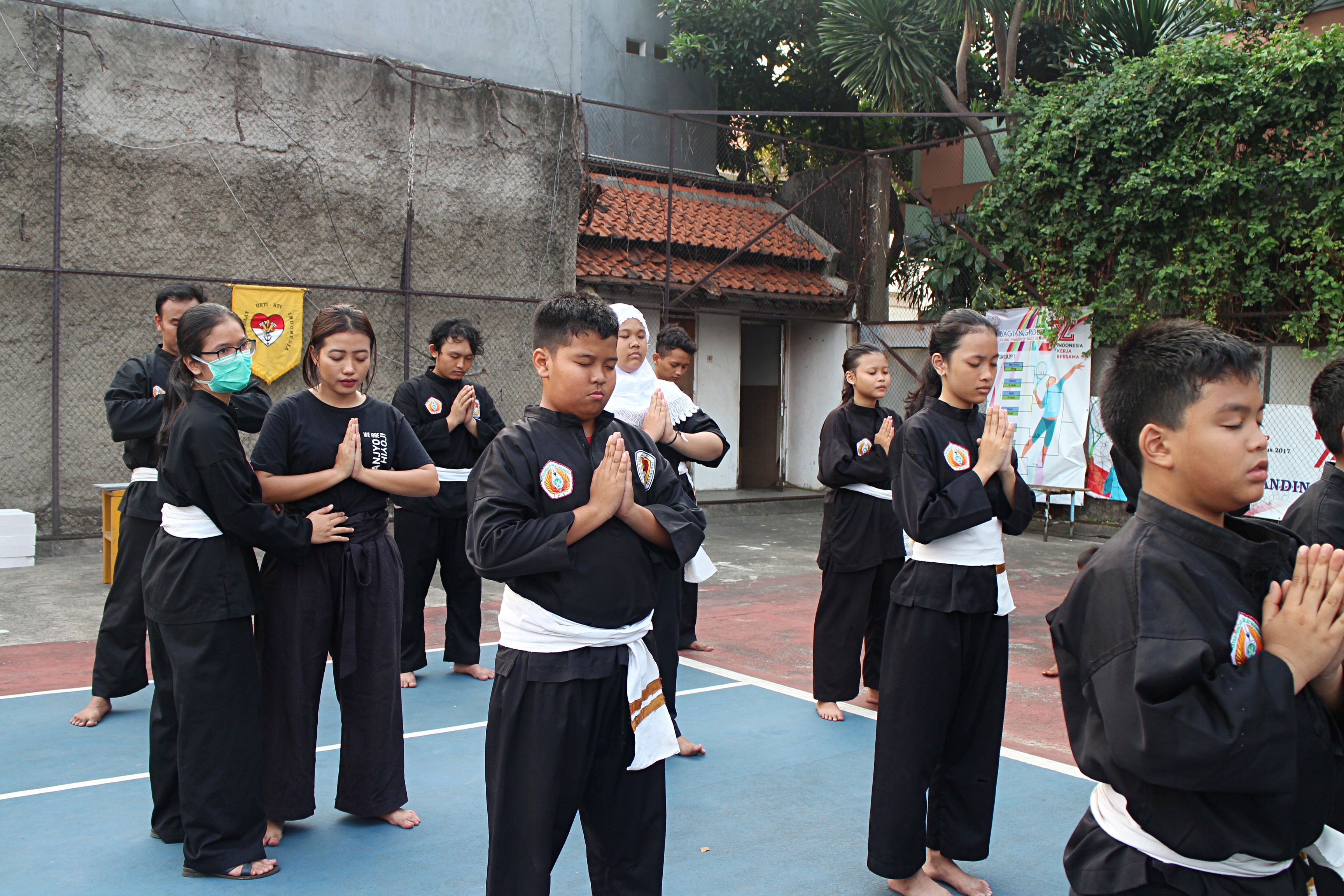 I arrived at 3:30 pm at Lapangan Tenis Tosiga, in Kebon Jeruk, West Jakarta. Around 20 people were there, all of them in black uniforms and white belts. Most of them were really young, like elementary school aged.