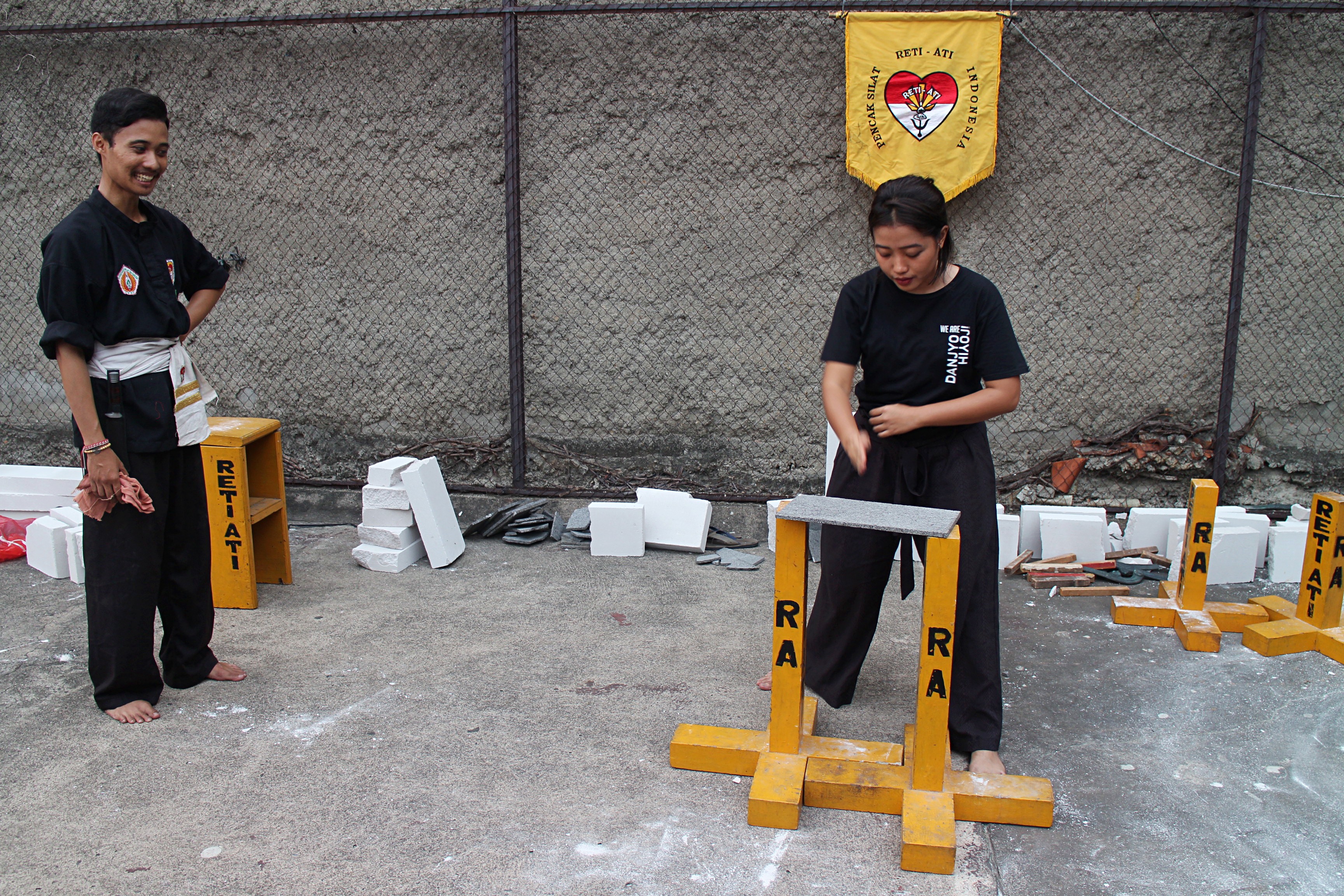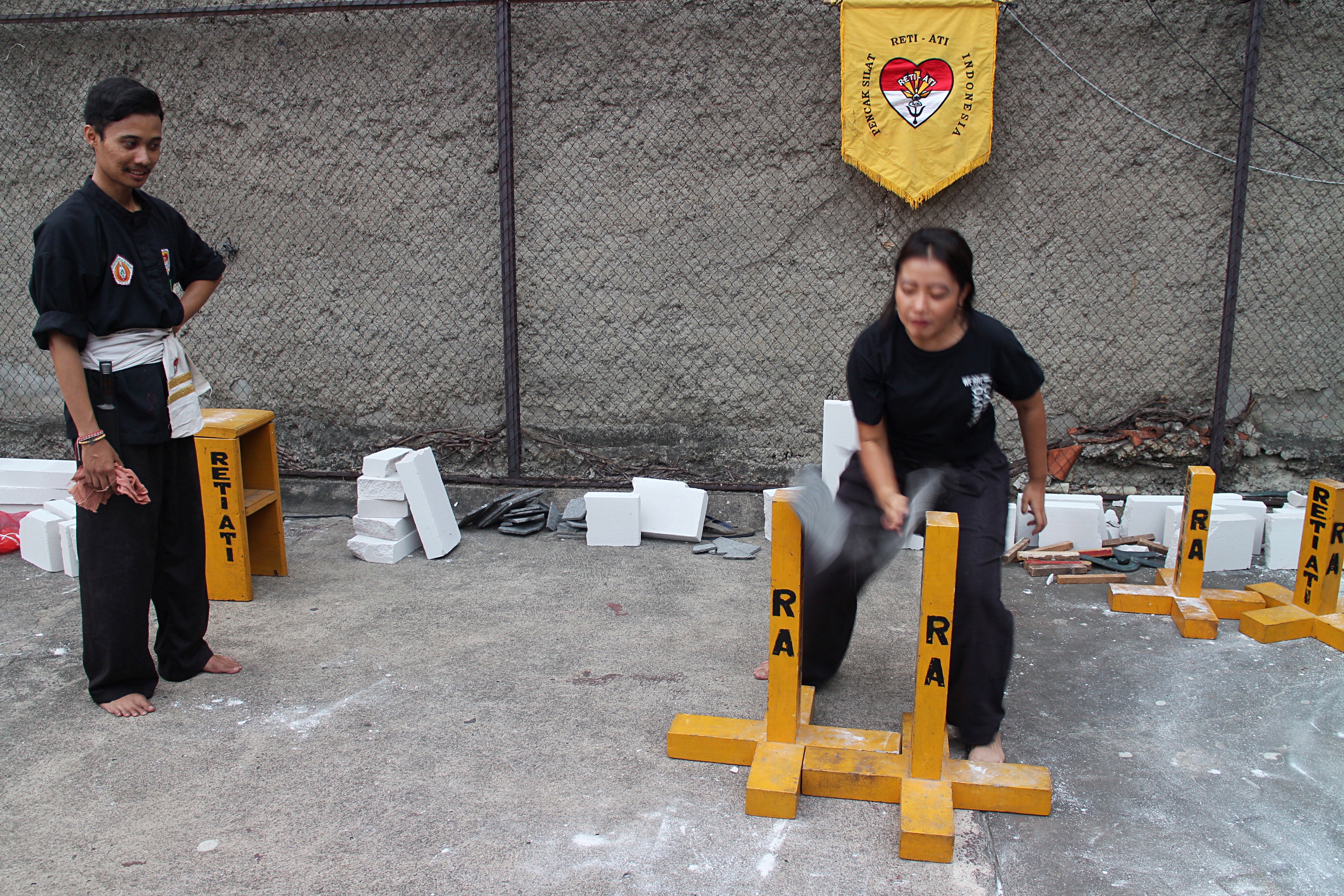 This “breaking session”—basically a change for me to bust my fist through some boards and bricks—will show how the breathing exercises practiced by the Reti Ali school of pencak silat can help you focus your inner power, Halilintar said. I think I came to the right place.
