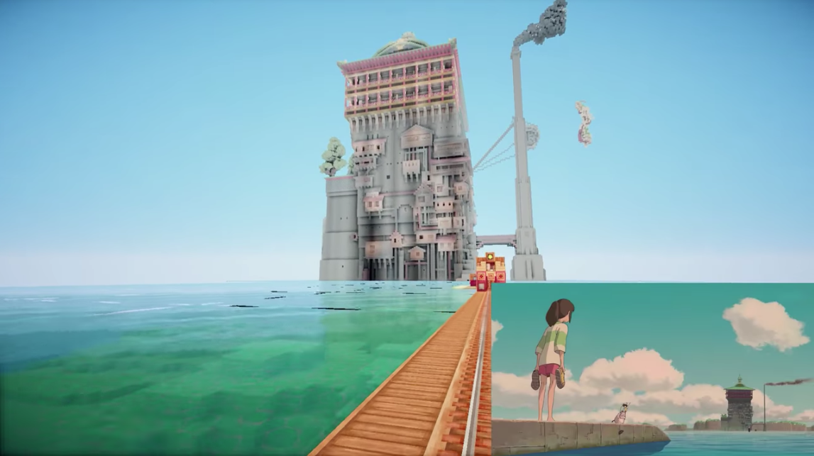 YouTuber Alan Becker, of Animator vs Animation fame, has been working on GhibliCraft for over seven years with an international team of programmers that’s grown to over 100 strong. In addition to recreating Spirited Away, they’ve created models of the scenery from Howl’s Moving Castle, and My Neighbor Totoro, periodically sharing updates. Becker recounts Jihiro’s journey as he shows off the custom Minecraft graphics and elaborate mods that make the world come to life. His guided tour through the iconic Spirited Away bathhouse is proof that Minecraft is an art form, especially compared with early renderings of the world.