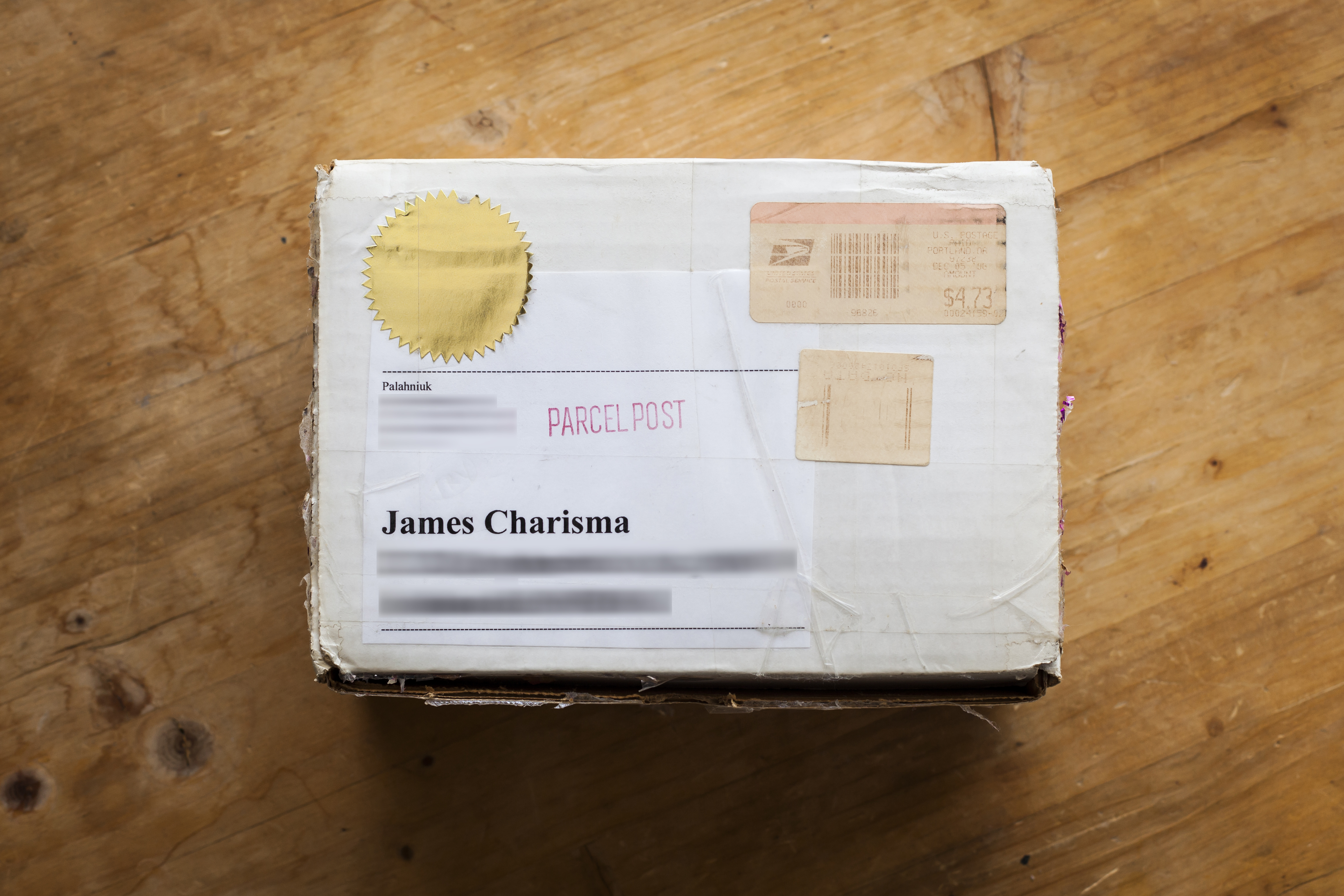 This is a new wrinkle on something Palahniuk has done for quite some time—sending packages full of various weird items to readers. I know this, because he once sent one to me.