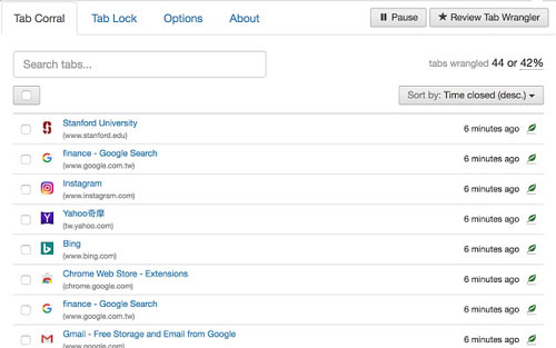 Automate the closing of tabs. For years, I’ve used a tool called Tab Wrangler to basically play garbage man for my habit of leaving tabs open. It’s like a Roomba for your browser. This is not a tab management tool, like OneTab. No, it’s a tab excavator, a strip miner of tab-based minerals. With a few exceptions, such as currently playing YouTube videos and websites I’ve specifically told it to ignore, Tab Wrangler automatically closes any unpinned tab after 10 minutes. If that seems a little aggressive, you can always increase the time, but you don’t have to, because …