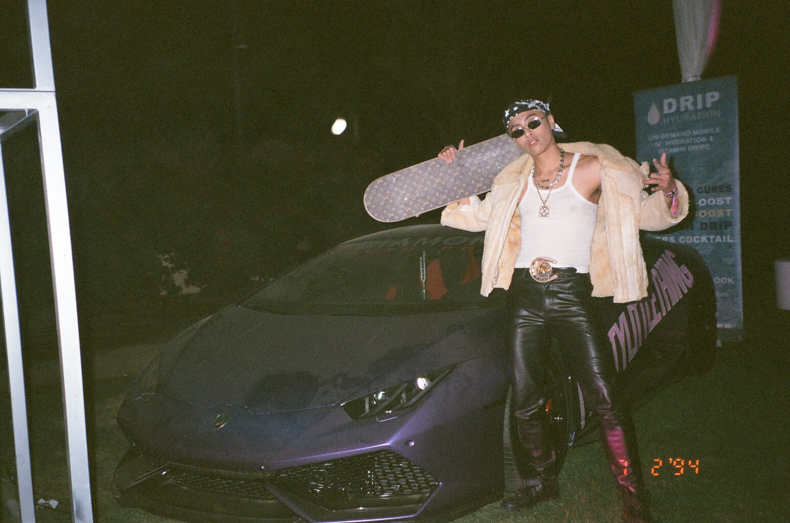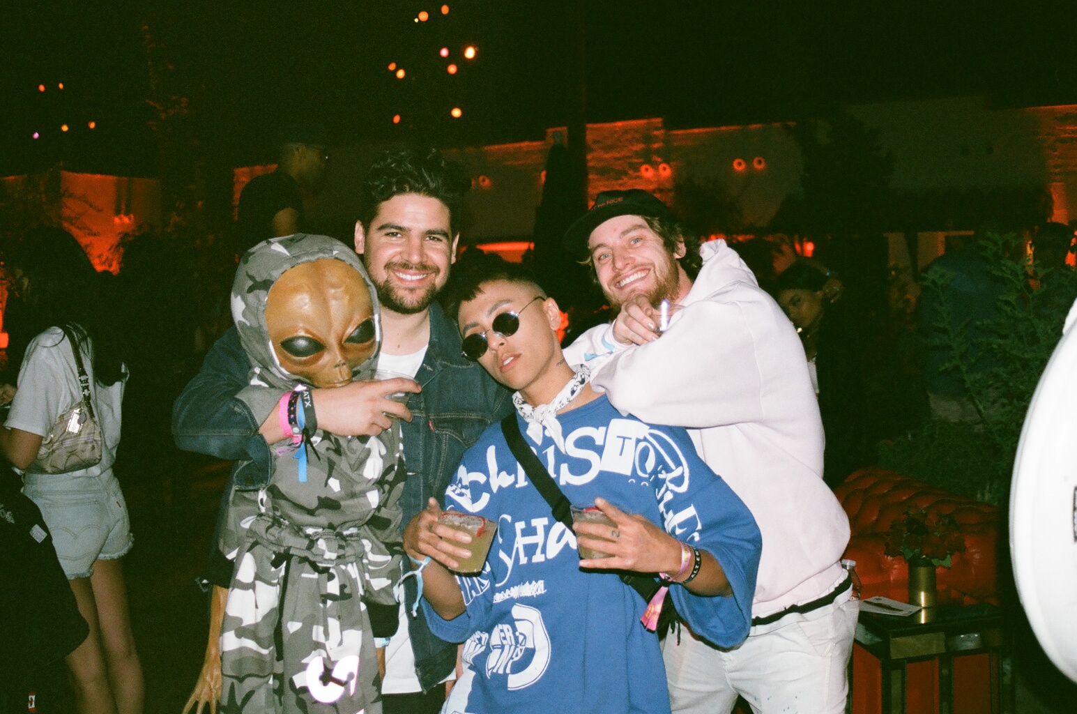 After watching Timbaland’s DJ set from the stage at Levi’s Neon Carnival with its queen Paris Hilton, I pulled up to the “Friends Keep Secrets” party in Indio for Cash App, the Influencer version of Venmo. Upon my arrival, police had “shut it down” blockading the entrance from any additional guests from passing through. #RESISTING the authority, I took one for THE CULTURE and tiptoed down the dark dirt road lining the party, hopped the fence, scraped myself getting through some gnarly tree branches, and waltzed straight through the party and onto the dancefloor. Invited attendees arrived in transportation provided by Lyft with a neon sign prominently displayed on the American flag wrapped lambo from Rae Sremmurd’s “Powerglide” music video. The last survivors, about 70 of us, were all huddled around Pedro (again) in the DJ booth, dancing ‘til the world’s end, rowdy, carefree, and vibrant. By its scant numbers, the party crowd of Influencer celebs made it feel more like an intimate living room loft function than any party I’d ever been to at Coachella. While Alexander Wang frolicked about with his long Azn mane swaying side-to-side, A$AP Rocky lit up a blunt for the mob from Canndescent, who hosted a V.I.P. cannabar of its portable pre-rolls. As I took a hit, the sun peaked above the desert mountains, and at once, I felt God’s presence come down on me, blessed with another year of iconic party memories.