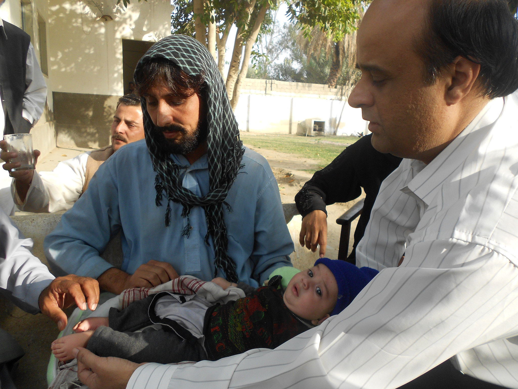Dr. Muhammad Furqan Nabil, National Stop Transmission of Polio Program (N-STOP) officer, examines a child with polio in Karachi, Pakistan in 2014. Image: Furqan Nabil/CDC Global
