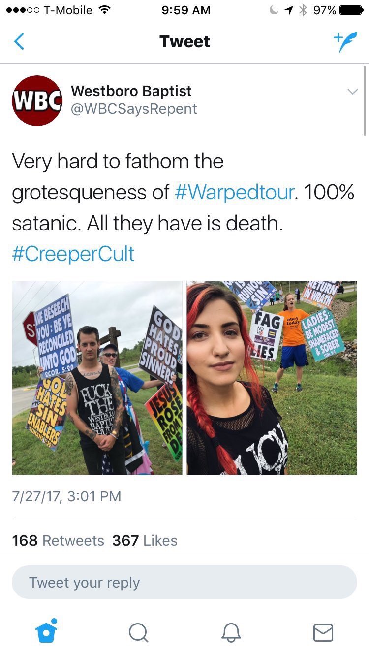 Will: They tweeted us saying something like “Creeper are going to hell, they are 100 percent Satanic. All they have is death.” Obviously we absolutely loved that and we immediately put it on a t shirt, got them pressed overnight and sold it the next day at Warped tour!