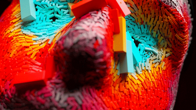 The video, made by using high-resolution 3D scans, blends surrealistic, colorful shapes. The work was conceived out of a desire to explore the unknown territory of new tools. Coming from a motion design background, Woll Söder wanted to express his visions through Houdini Software, a program that was new to him. “I’ve always been a big fan of bright and bold colors. With this project, I wanted to make it more vibrant than what I tend to create,” says Woll Söder. As a result, many geometric figures fill the entire body surface in a truly organic motion.
