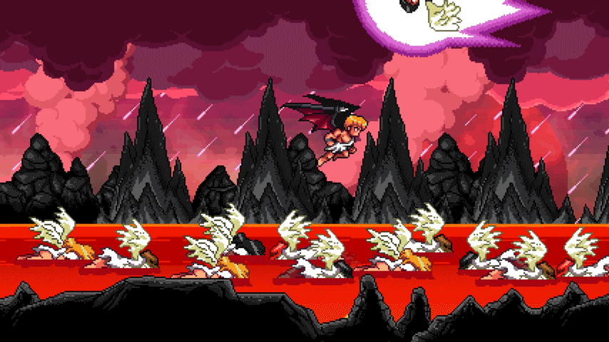 It was actually after Tarazi wrote the script that he learned Delta Heavy’s new LP was titled Paradise Lost. Many of the scenes in the video are taken from the poem, though the text is simplified a bit to fit into the gaming-styled format. Beelzebub, a giant gray and pink fly with bulging eyes and a pentagram on its forehead, tells young, cherubic Satan to “defeat God,” and so the journey begins. The resulting trips from Hell to Heaven and back are reminiscent of repetitive, multilevel side-scrollers, and the playful command options like “fight,” “run,” and “apologize” hint at questions of penance, redemption, and retribution.