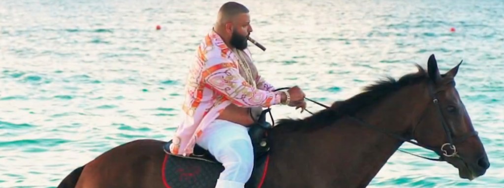 But his new video for “Nas Album Done” is the best thing he’s released yet. Look at that picture above. That’s a screenshot from this video. It shows DJ Khaled riding a horse through the ocean and smoking a cigar. Does it look as though he’s uncomfortable? Hell no. That’s how DJ Khaled sleeps. It’s also worth knowing that this shot pretty much fades in from a shot of five different bottles of Ciroc.