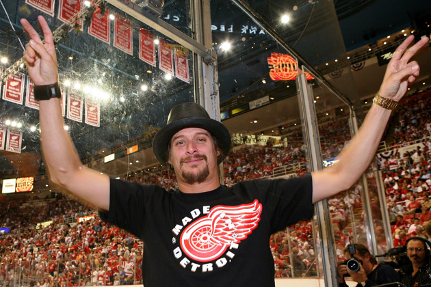 - Wait, was that Kid Rock? I thought he was from Detroit. (Googles.) He is! What are you doing, Kid? Your team played the Hurricanes in the 2002 final, you can’t just switch sides now.
