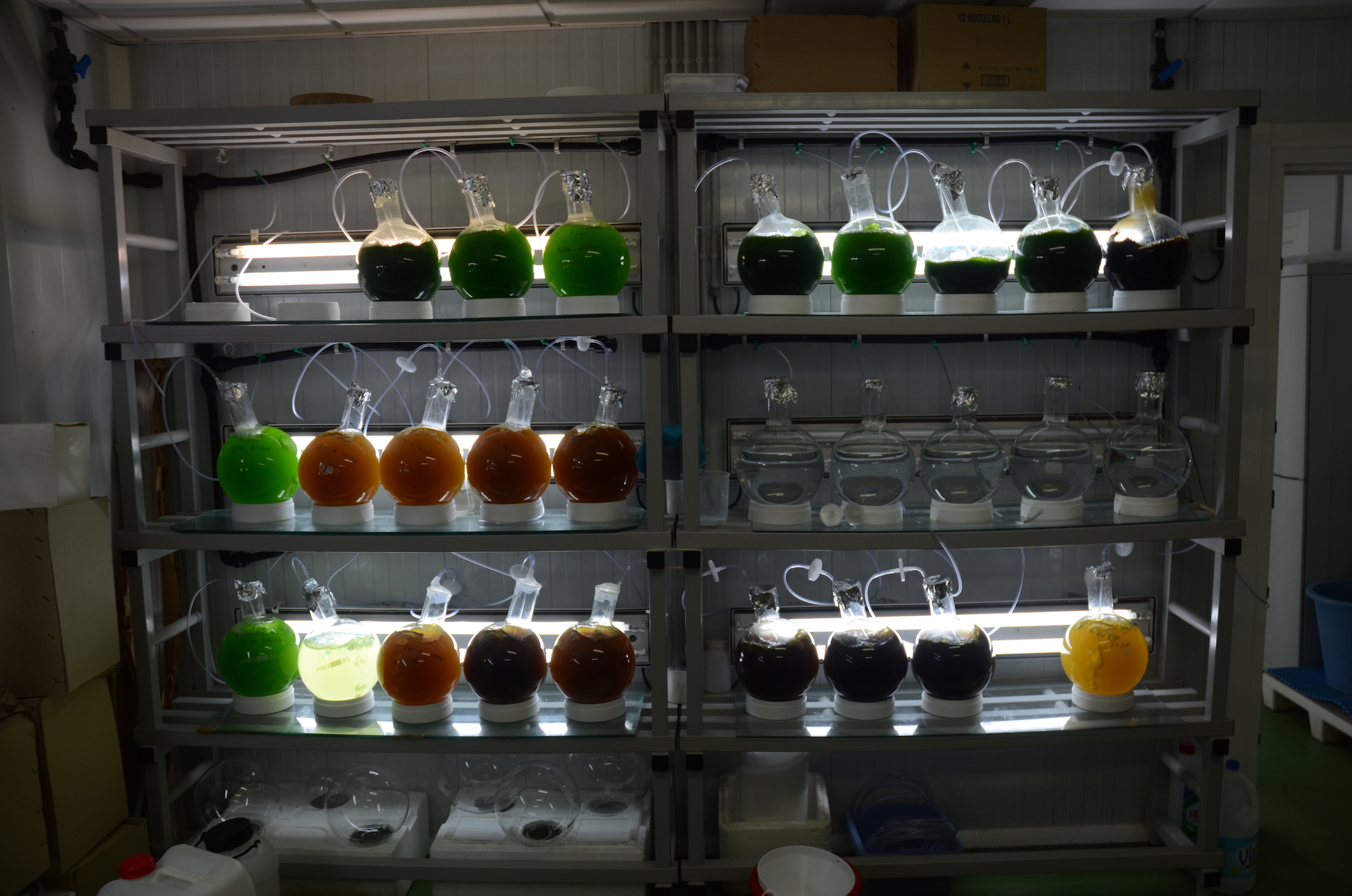 The Murcia center’s main facility is essentially a farm for growing food for baby bluefin. Older bluefin eat baitfish like herring and mackerel, but larval bluefin feed on zooplankton, which the IEO scientists grow themselves, along with vats of colourful algae to feed the zooplankton. As the bluefin grow into fingerlings, they eat the larva of other fish, also raised on site. It takes three years for Atlantic bluefin to reach their minimum commercial weight of 40 kilograms.