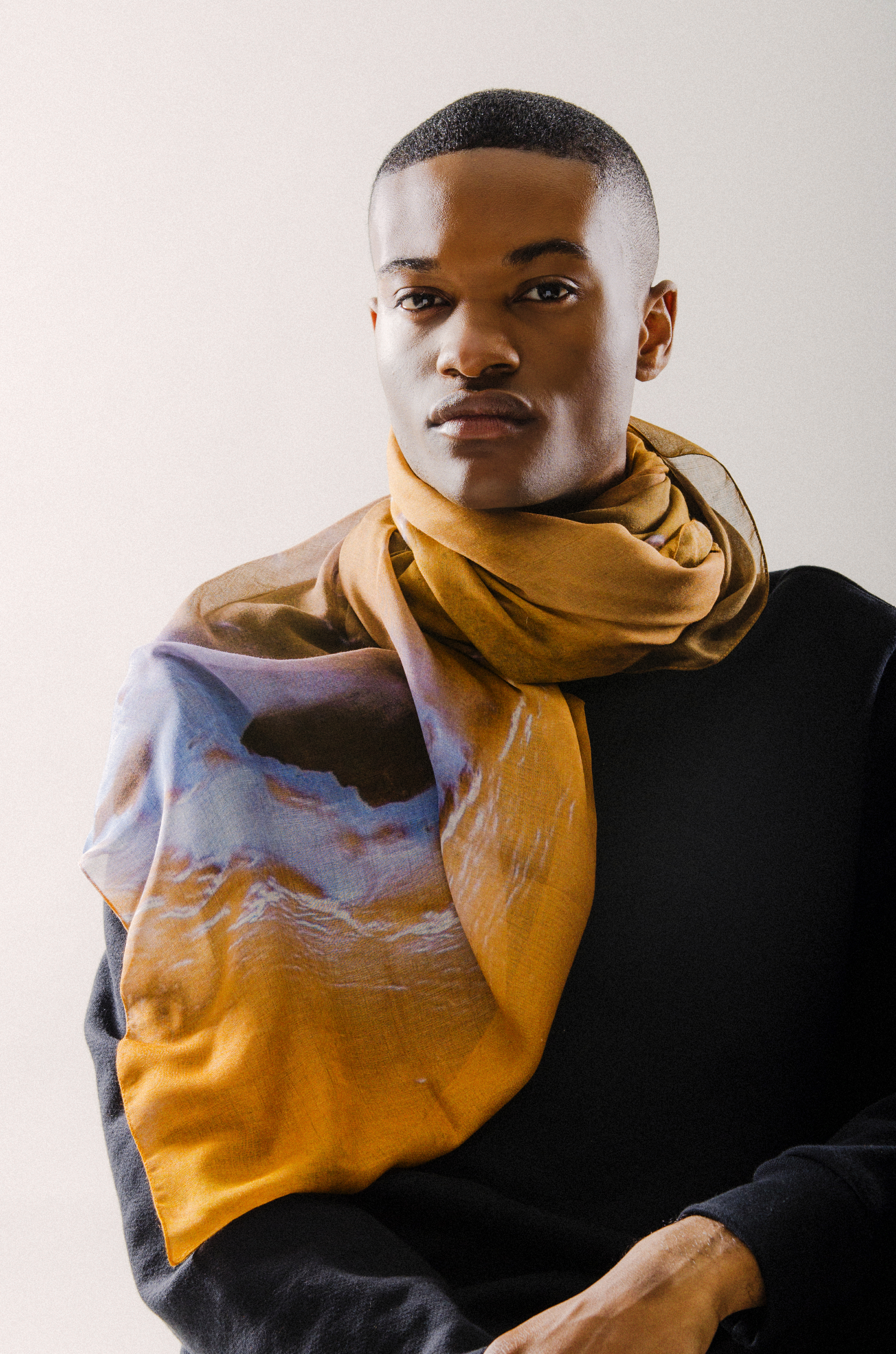 Semaan Vernon describes her longtime fascination with extra-terrestrial images:For this collection, I tried to select the ones that seemed the most mysterious, showing waves of dried water, earth-like colors, shapes that seem to look like Earth but still have this otherwordly experience to them. […] I think of myself as a curator, selecting the images that speak to me most. I often keep a very large collection that revisit and reselect many many times. Often, even the night before sending to print, I may still change my mind. The sentiment echoes the same aesthetic influences ("As a child I always wanted to be an astronaut, but always struggled in math and instead spent most of my time collecting images of the Universe and the Earth from above,") that inspired Slow Factory's From Above, Cities by Nightluxury collaboration with art director James Victoire. That line featured the scarves adorned with NASA satellite images taken thousands of feet above London, New York, and Paris. An Independence Day release, it served as a reminder, "to remember we are all in this together, and that from Space, things look pretty peaceful. As famously said by the astronauts that have seen the Earth from Space 'No borders of political boundaries are seen from Space.' We are one."