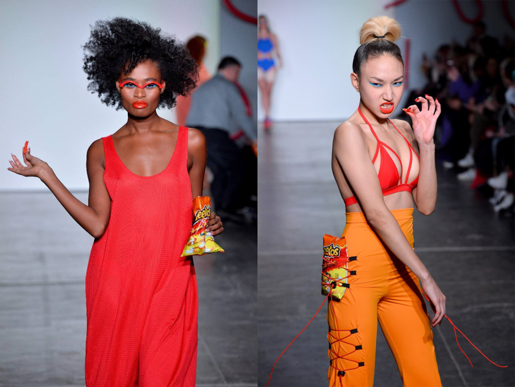 And three of the models wore—or ate—something else unconventional in high fashion: Flamin’ Hot Cheetos.