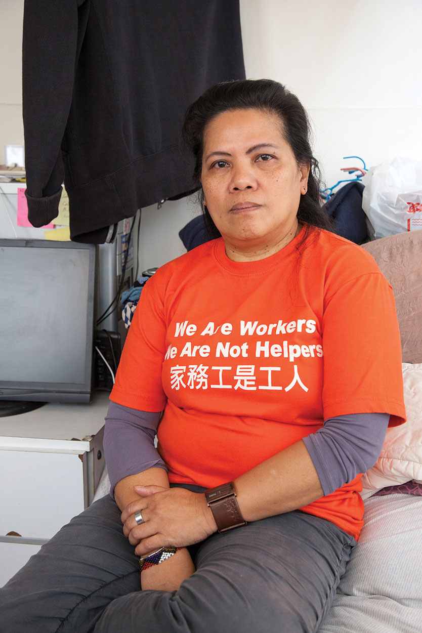 For Grace Estrada, a Filipina domestic worker and the chairperson of the Progressive Labor Union of Domestic Workers (PLU), the live-in rule is downright dangerous. “It’s slavery if you force the worker and the employer to sleep together in the same place,” she said. “It’s 24 hours on call.” Estrada’s union is a small, loose coalition of domestic workers who meet on Sundays in a tiny apartment in Kowloon’s Austin neighborhood to discuss everyday issues, ranging from debt bondage to physical and psychological abuse.