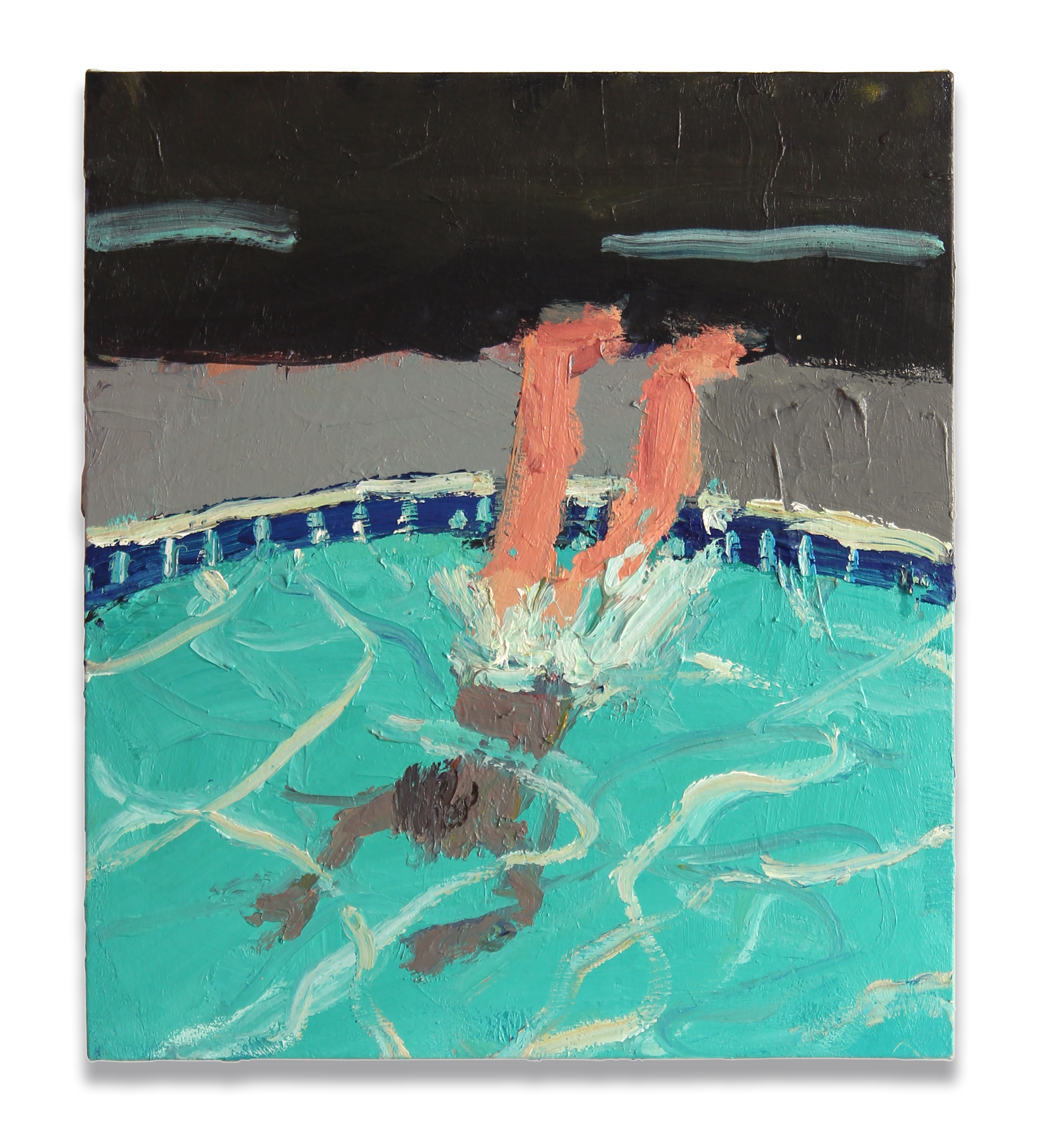 “I love summertime in NYC,” he says. “It feels like every day is Saturday. After being cold for nine months, everyone is excited to wear less clothes and stay out late. Summertime is a good device for me to paint people without clothes on, butts creeping out of swimsuits, side boobs, wedgies, and belly flops.