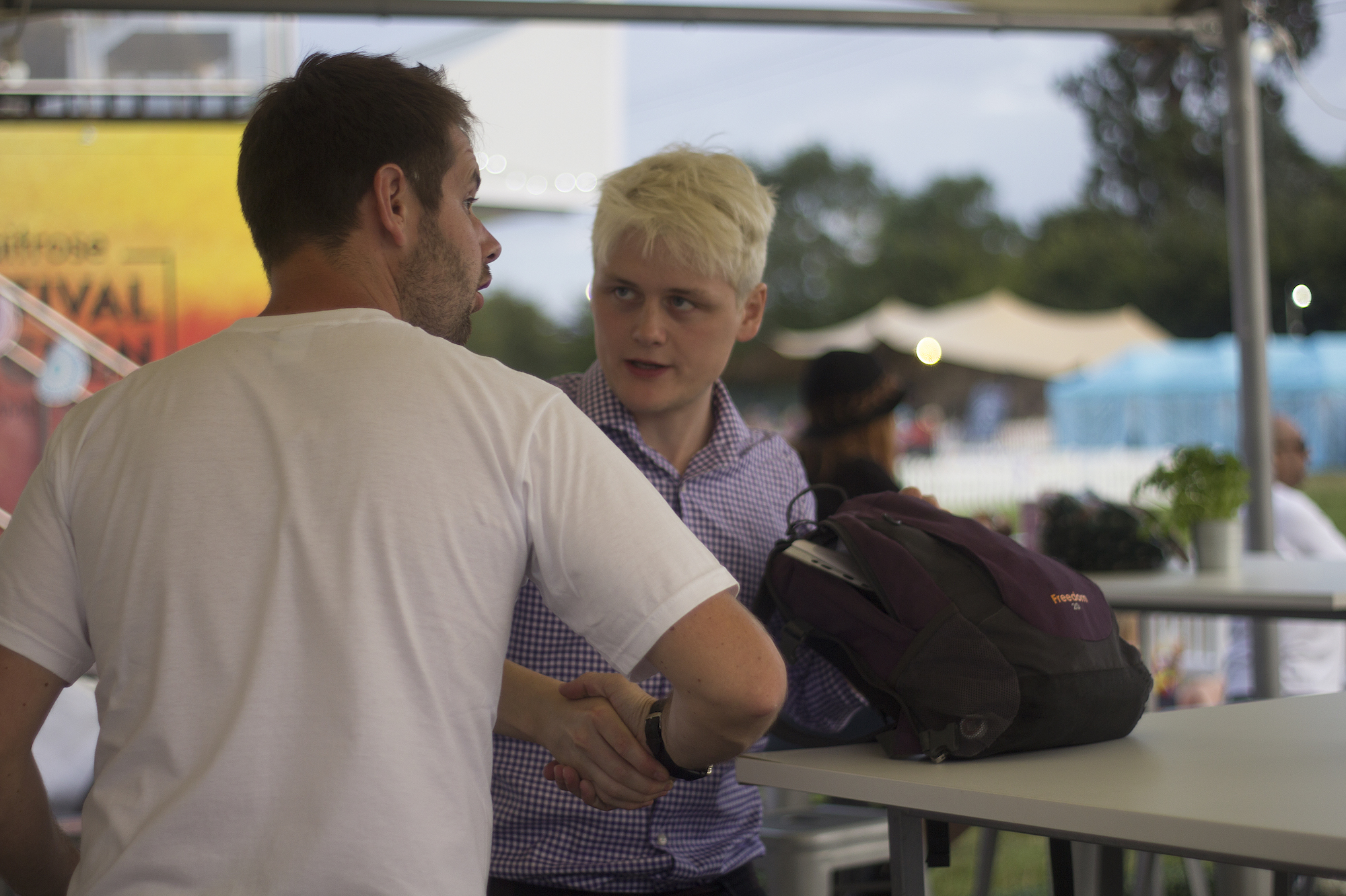 That’s why I’m crammed onto an afternoon service from Paddington into the heart of the Cotswolds on a Friday afternoon, clutching a plastic wallet of four CVs. The four chances I have to change my life. Well, not exactly mine. Given that I’m a ‘Google: Oobah Butler’ away from blowing the whole thing apart, I’ve given myself a fake name: Clive James. But it’s going to take a lot more than that to go undercover. I gather this from the conversation I overhear queueing at the festival box office. The gentleman in front – thirty-something, dressed in slides and a salmon V-neck shirt; looking like a regional manager of a Toni & Guy – is picking up tickets. The lady behind the desk is explaining how, though his tickets were gifted as free weekend passes, they encourage a charitable donation. “If I do,” he says, “can you upgrade my passes to VIP?” The lady laughs, thinking he’s joking. He is very much not joking. She explains why this isn’t possible. He struts off without paying a penny. That’s the sort of vibe we’re dealing with here.