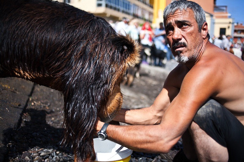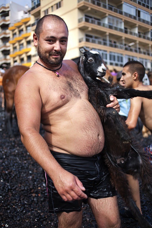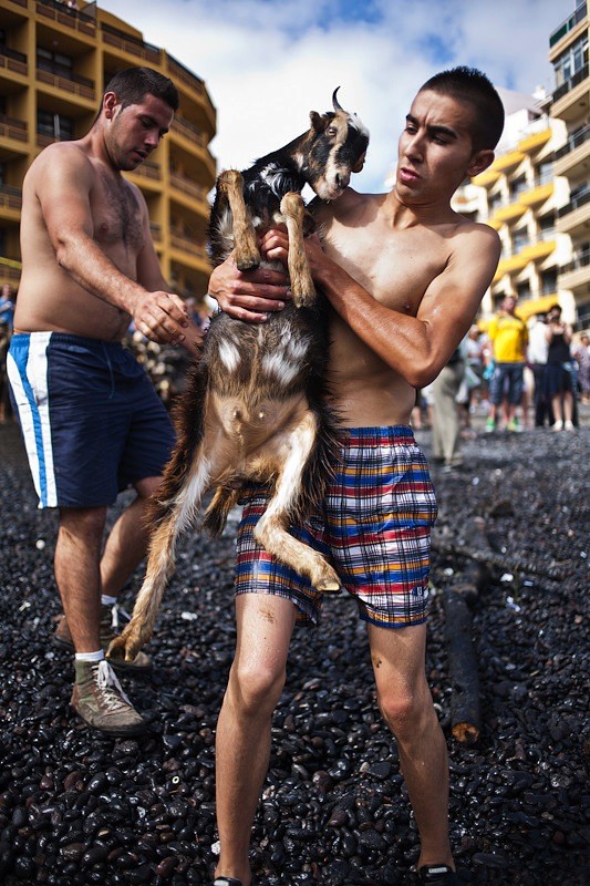 Every June on the island of Tenerife, goat herders from the mountain villages gather in the harbour of Puerto de la Cruz at dawn to celebrate the Fiesta de San Juan (St. John the Baptist Day) by dunking their livestock in the sea.