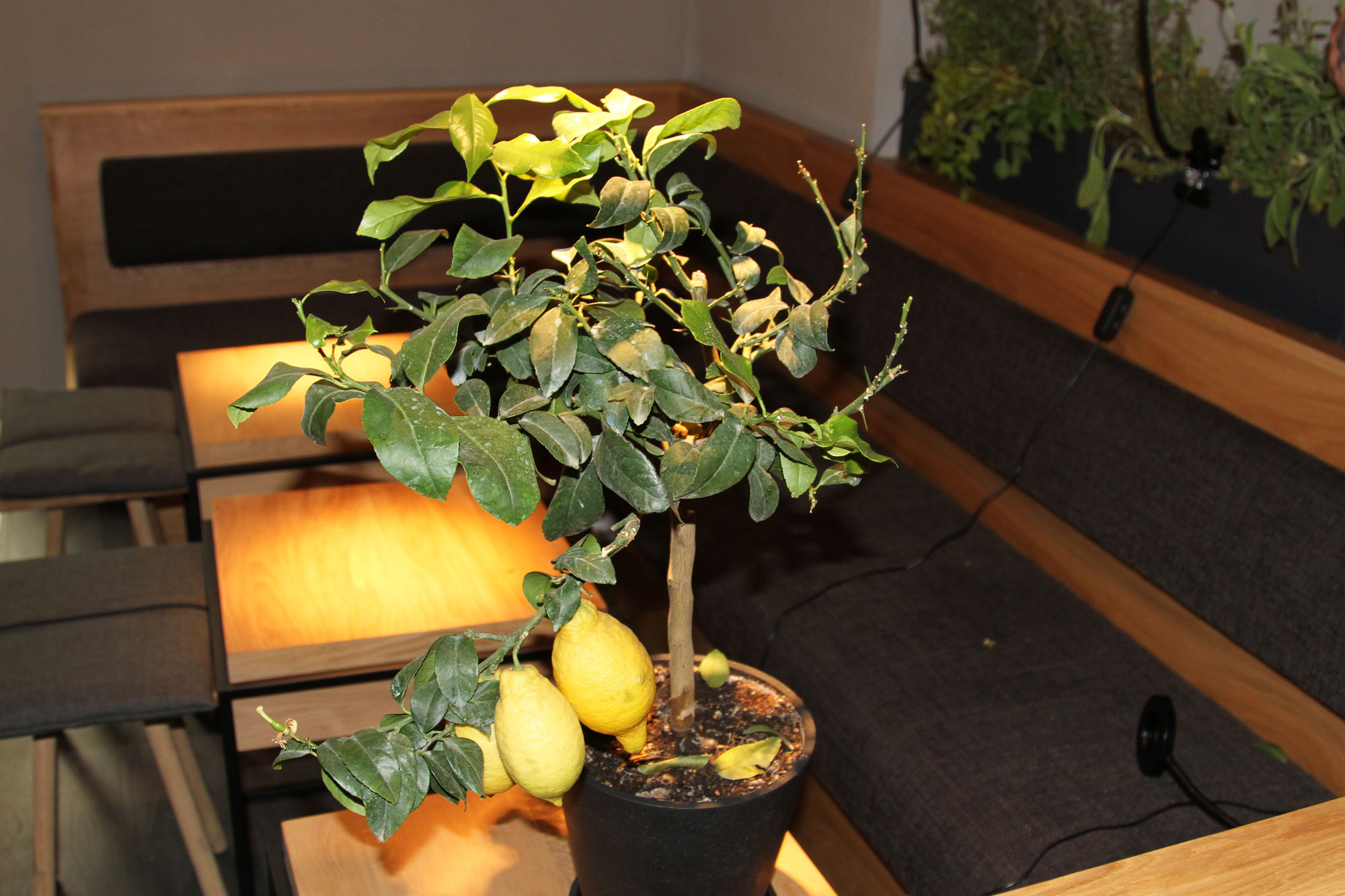 I can’t wait any longer to ask Whiley about the elephant in the room. Or rather, the leafy, green tree under hydroponic lights in the corner. Three lemons hang from its spindly branches.