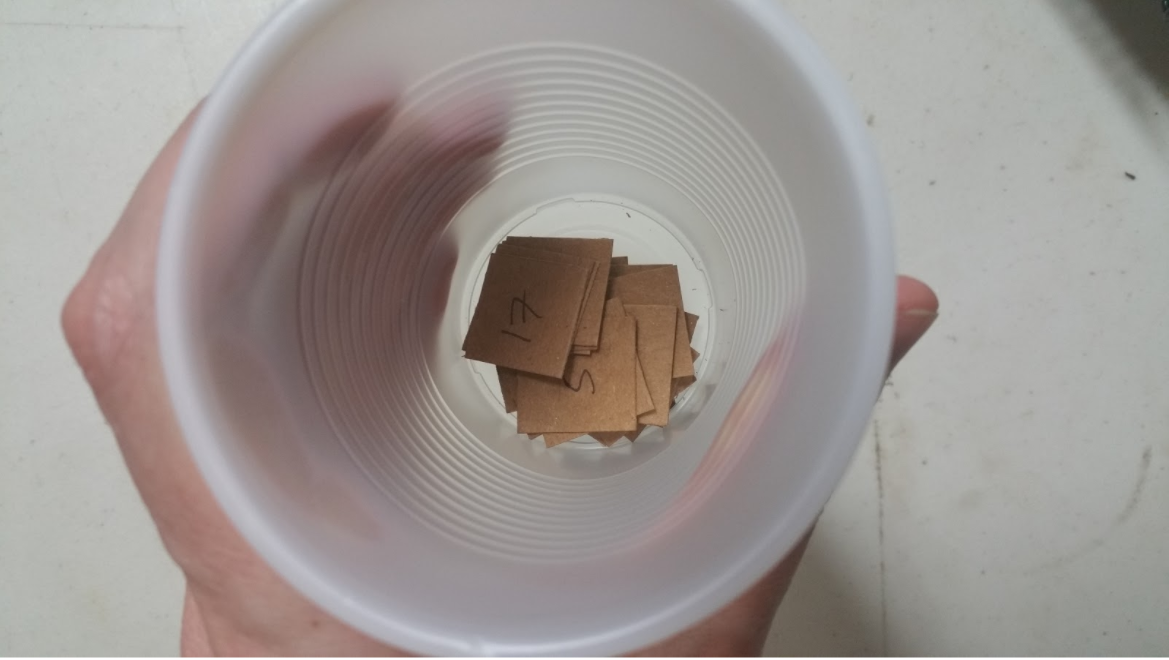 A former inmate from Ohio who prefers to go by his Reddit handle “Pariahdog119,” describes the process of making a sand-filled origami die: “You’ll need the following: Cutout dice template, thin cardboard (saltine cracker boxes are OK,) fine sand (the finer the better, don’t use dirt,) paints, glue, and for your hardest theft yet, clear poly coating from Maintenance. Cut out the cardboard using the dice template. Paint it and add the numbers. Fold and glue all sides but one. Let dry. Fill with sand. Tap make sure it’s very very full. You don’t want it rattling around. Close and glue shut. Add several clear coats to seal seams and protect your colors. Don’t try to bounce the dice, you’ll smash them. Roll them out the side of your hand or cup gently.”