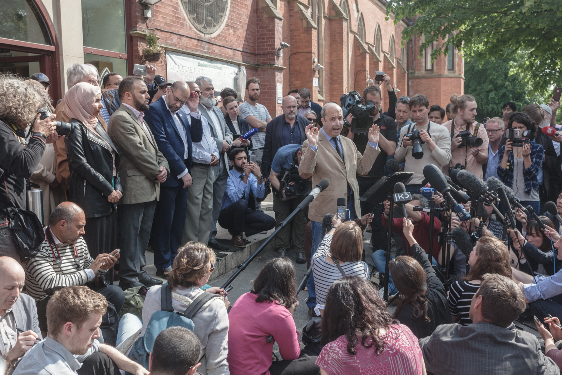 Eventually, Fawzi Haffar, a trustee of the centre, read a prepared press statement. He said the attack had “shocked us all”. The prayers of the centre were with the victims, he said, before thanking the police and emergency services, “as well as ordinary people… who provided assistance in the immediate aftermath of this atrocity”.