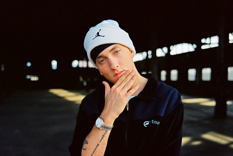 This is the closest you can come to finding a picture of Eminem smiling on the internet.
