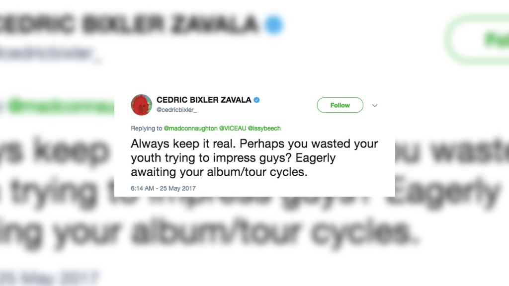 I’ve been thinking about it a bit, and it’s just like, the internet, and Twitter, and celebrity… they make us not see people as people, we see them as punchlines. Also though, that burn: “Maybe you wasted your youth trying to impress guys.” Spot on, that’s 100 percent correct.