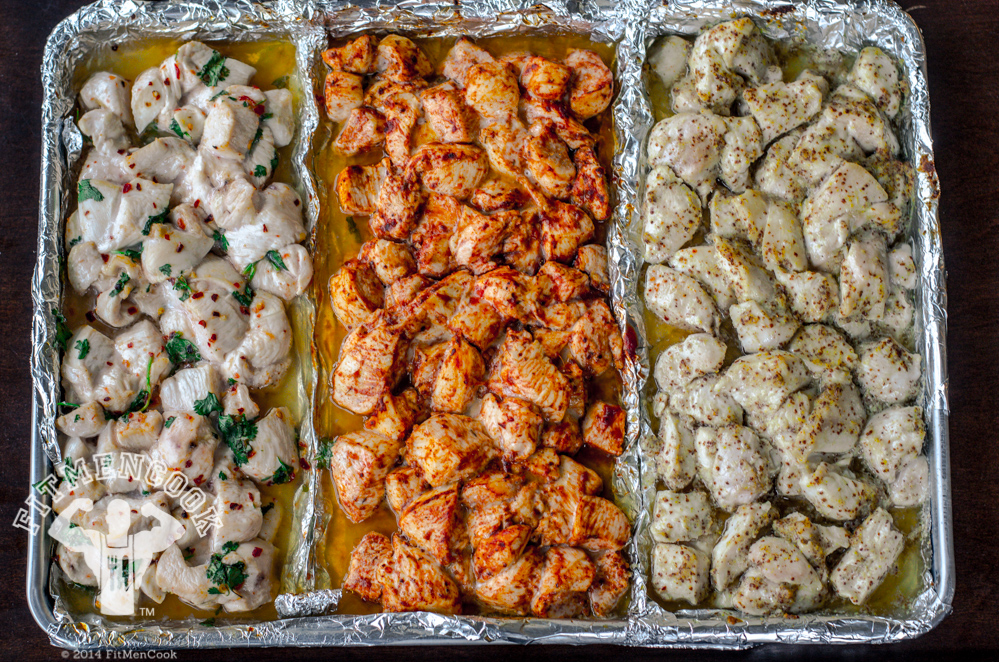 Yes, prepping your meals inherently means that you have to make big batches of the same ingredients. But that doesn’t mean they have to taste the same at every meal. Curry likes to eat two of his go-to proteins—chicken and salmon—hot and cold. Take his first successful meal, that lunch of quinoa, chicken, and roasted veggies. He’s used the same ingredients to make different meals.