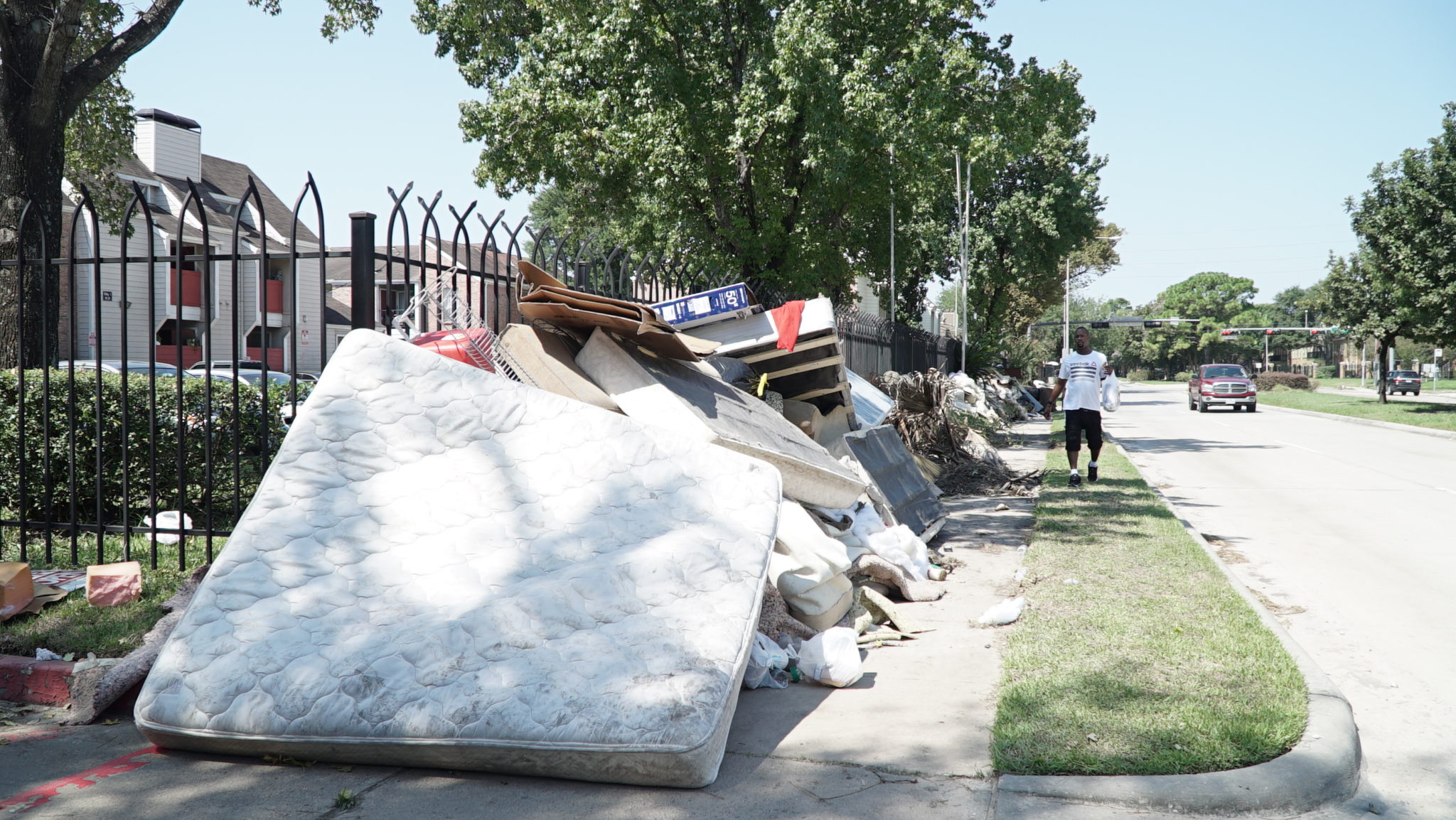 Lindley has lived in this apartment complex since 2009. It’s flooded after every major storm, she says, but Lindley can’t afford to move. The neighbor whose house she fled to, Alberta Jones, says the same thing. Greenspoint, which is south of Bush Intercontinental Airport, is overwhelmingly low-income, and its residents are still reeling from the “Tax Day” floods that soaked Houston in April 2016.