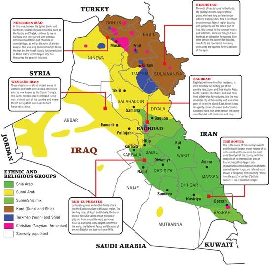 o you know that thing Denzel Washington said in Philadelphia, where the mean older lawyers would be equivocating (that means lying) and he’d go, “I don’t get it. Tell it to me like I’m a five-year-old.” When he said it, he meant, “Cut the shit.” But when we say it, we mean, “Seriously, daily reports of murders and thick books about Wolfowitz aren’t helping. We. Do not. Get this.” So we called up Zeyad, an Iraqi journalist, and said, “Hey Zeyad, this Iraq country thing, tell it to us like we’re five-years-old.” The rules were “no research” and “no hard thinking.” Just give it to us like you’re our uncle, driving us from the airport into the city. And this is what he made.