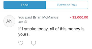 Because I don’t have checks, trustworthy friends, or a desire to give money to those fuckers even by accident, I ask my editor Brian if I can Venmo him $2,000 in the morning. If I fail by night’s end, I tell him, he can transfer the payment to his account. (If you’re thinking, That isn’t how Venmo works, you’re right. But more on that in a bit.) [Editor’s note: I told you, dummy!]