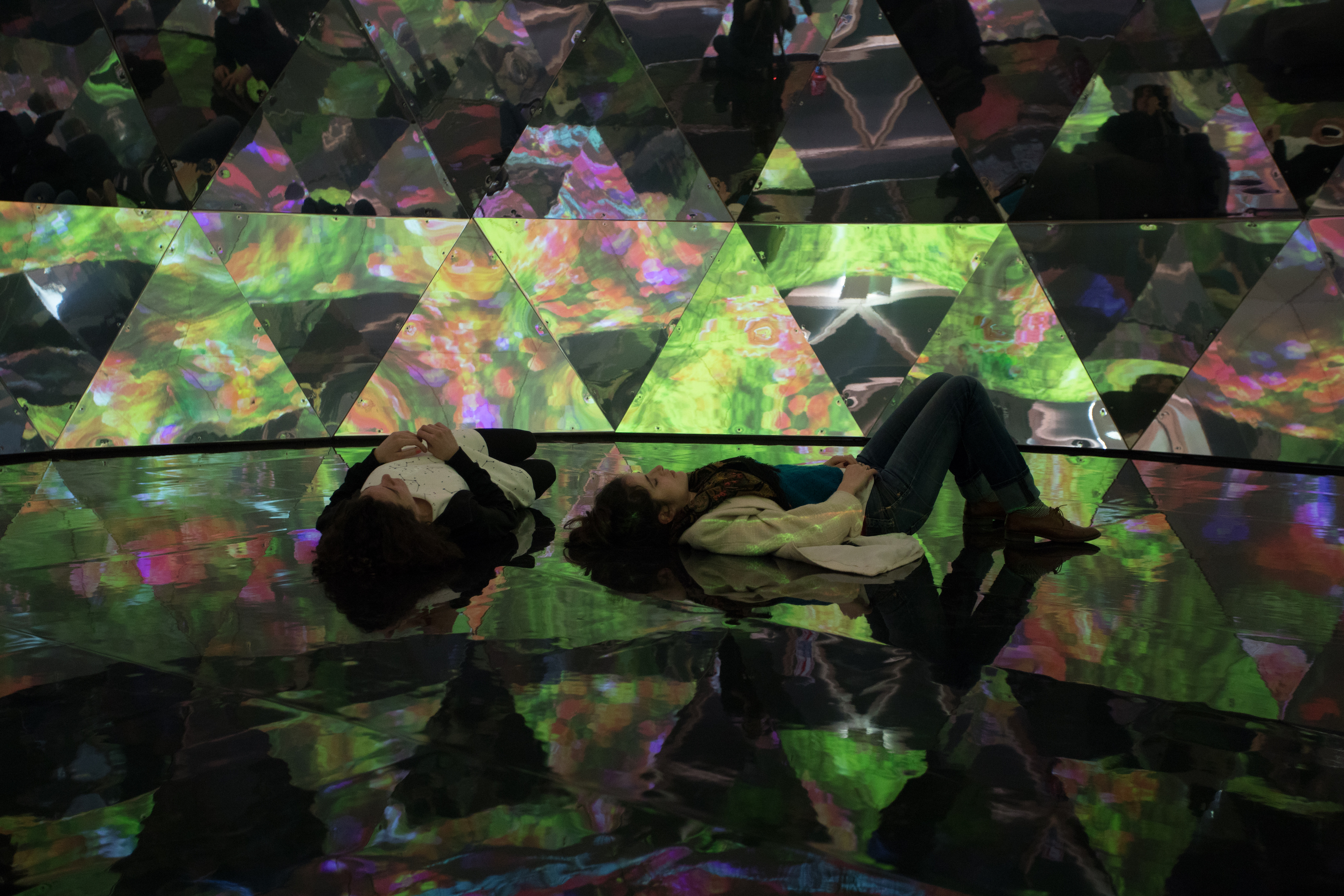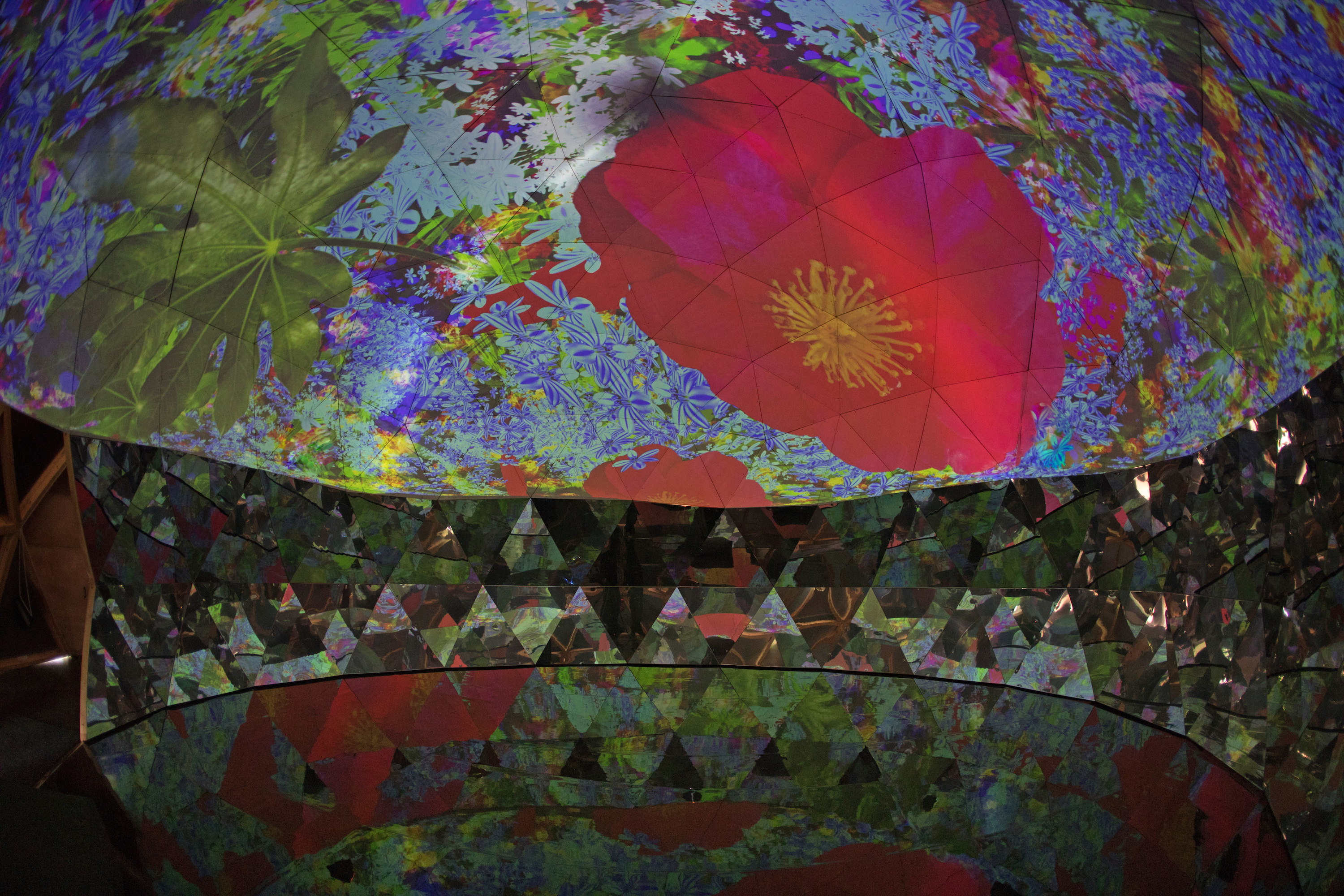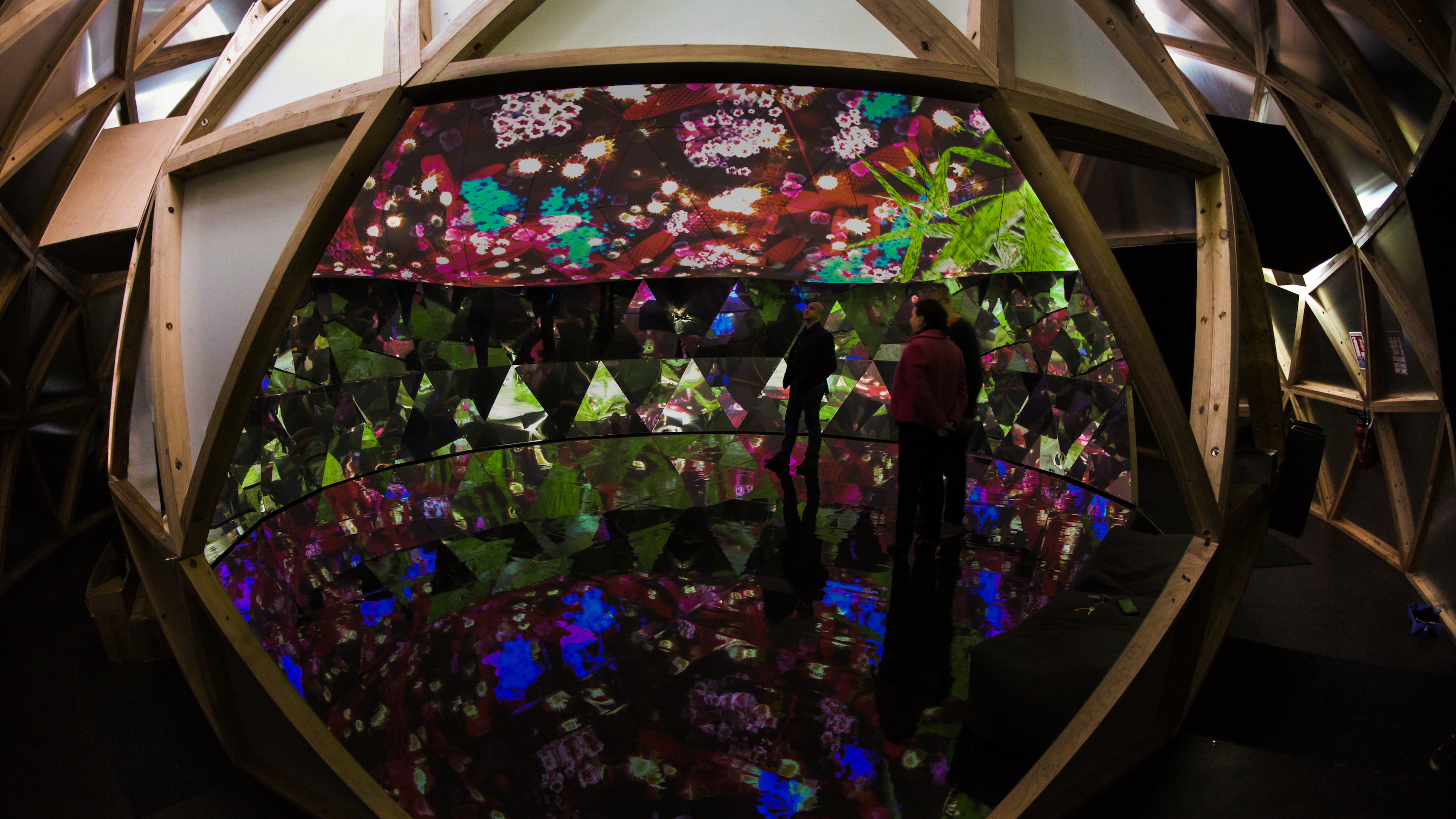 The French artist is known for interactive projection-mapped carpets and revitalizing old architecture with new media art. For his latest project, he had a team construct a 39-foot-diameter geodesic dome from scratch in the gardens surrounding a 1,000-year-old castle called the the Domaine de Chaumont-sur-Loire. Coated with holographic film on the outside, the futuristic “half-elliptical architecture” has an inner shell displaying a 360° video collage of colorful plant life. A sweeping soundtrack by Jacopo Baboni Schilingi immerses visitors in the space, while mirrors at the dome’s base reflects the visuals onto anyone who can break their gaze from the ceiling.