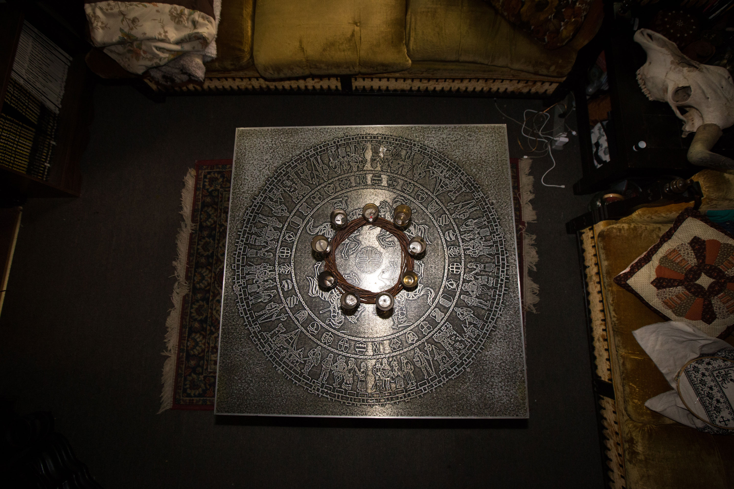 When I point to a sizable alligator in her living room, she tells me it’s over 100 years old, and recently used in a Lemony Snicket TV set. Upstairs she shows me how to blow through a Tibetan flute made of a human thigh bone. I’m told this is part of an ancient necromancy tradition, an instrument meant to literally wake the dead.